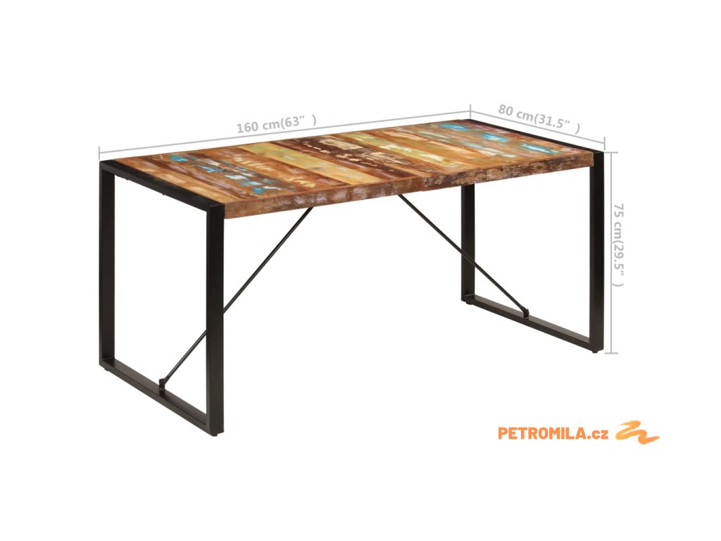 Jídelní stůl 160 x 80 x 75 cm masivní recyklované dřevo
