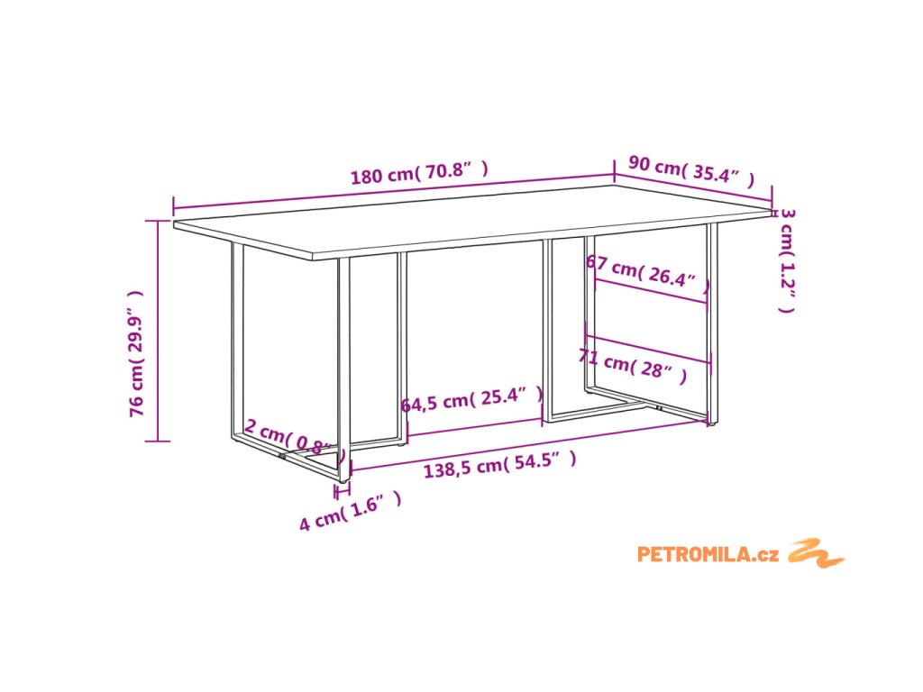 - Rozměry: 180 x 90 x 76 cm (D x Š x V)