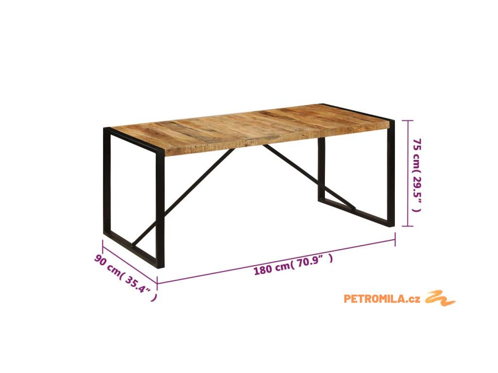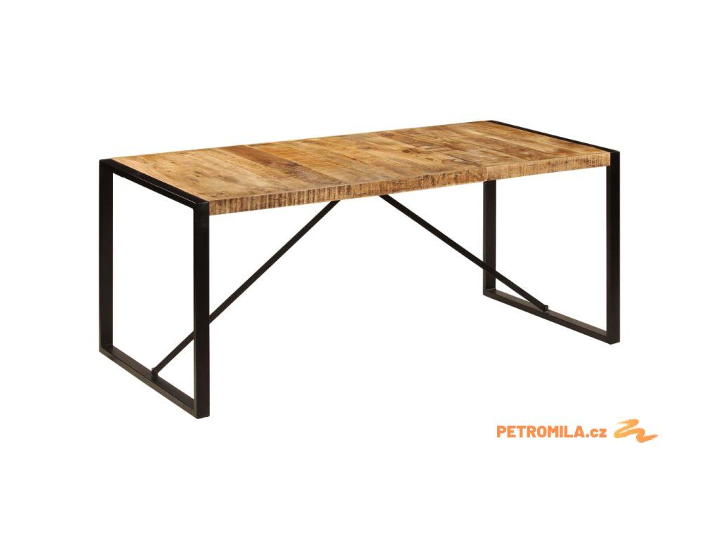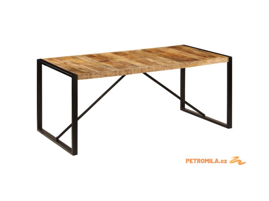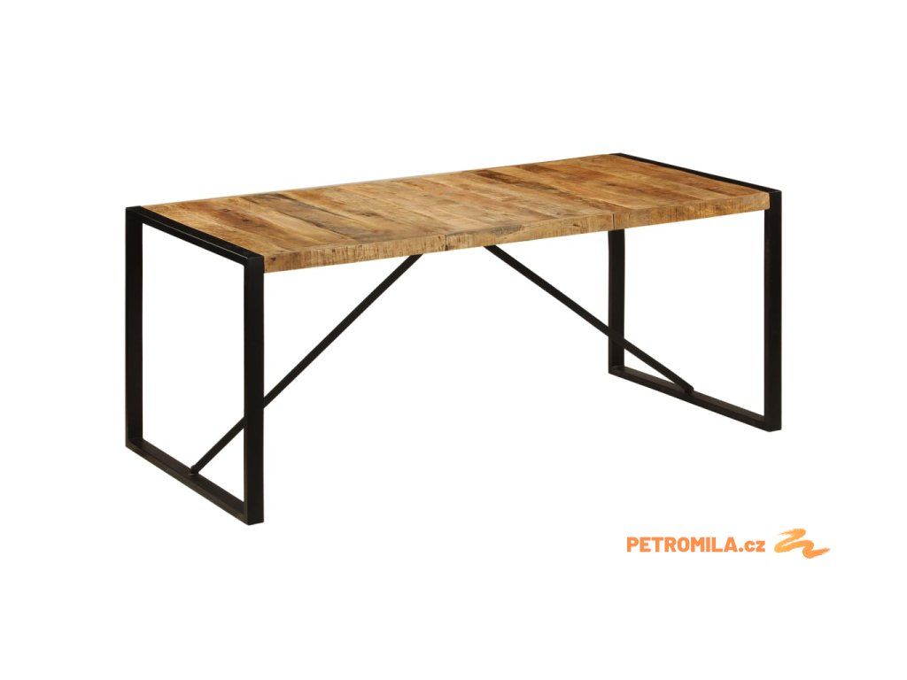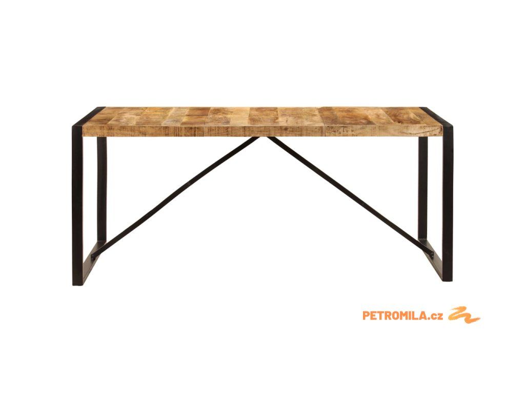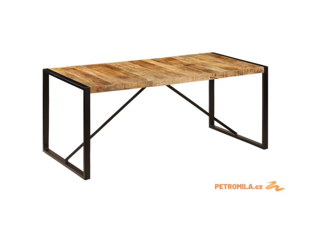 Jídelní stůl je vyroben z masivního mangovníku, což je tvrdé dřevo s hustou texturou. Hrubé mangovníkové dřevo je nejen schopné unést značnou váhu, ale výborně také odolává opotřebení a působení času. Stůl s překrásným designem je proto velice stabilní, odolný a příjemný na pohled. Každá fáze výrobního procesu je prováděna s mimořádnou péčí, ať už se jedná o leštění anebo lakování. Silné nohy z oceli s práškovým nástřikem dodávají stolu na odolnosti. Sestavení jídelního stolu je snadné.