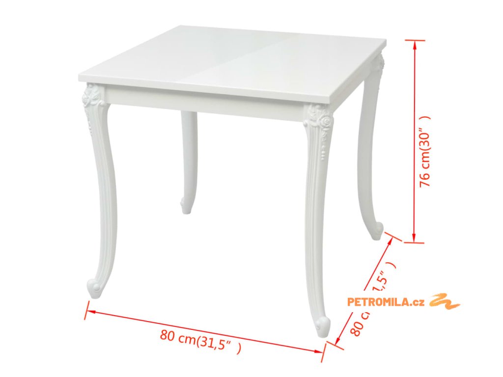 Jídelní stůl 80x80x76 cm vysoký lesk bílý