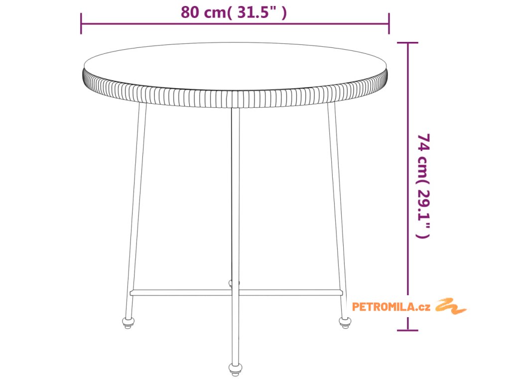 - Rozměry stolní desky: 80 x 0,5 cm (průměr x V)