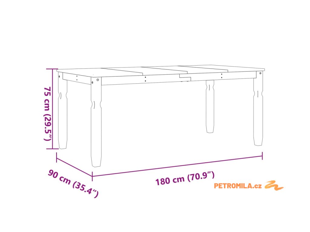 Jídelní stůl Corona bílý 180 x 90 x 75 cm masivní borové dřevo