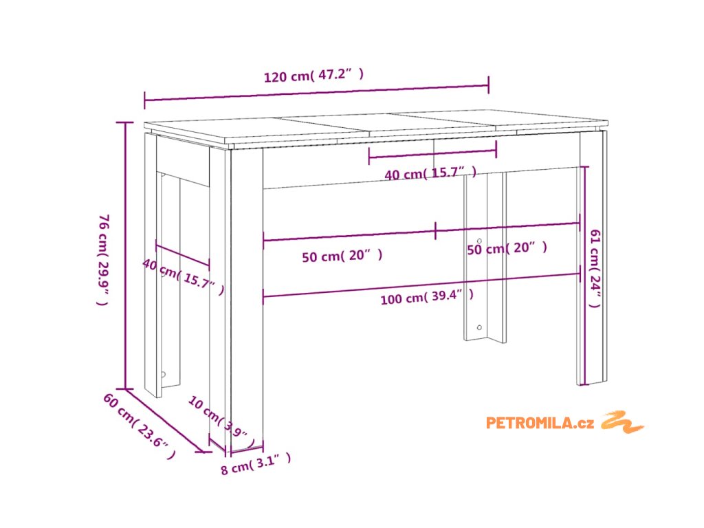 - Rozměry: 120 x 60 x 76 cm (D x Š x V)