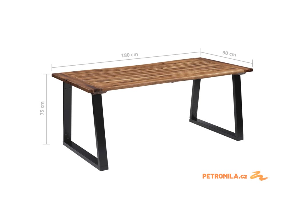 - Materiál: masivní akáciové dřevo s olejovou povrchovou úpravou (stolní deska), kov s práškovým nástřikem (nohy)