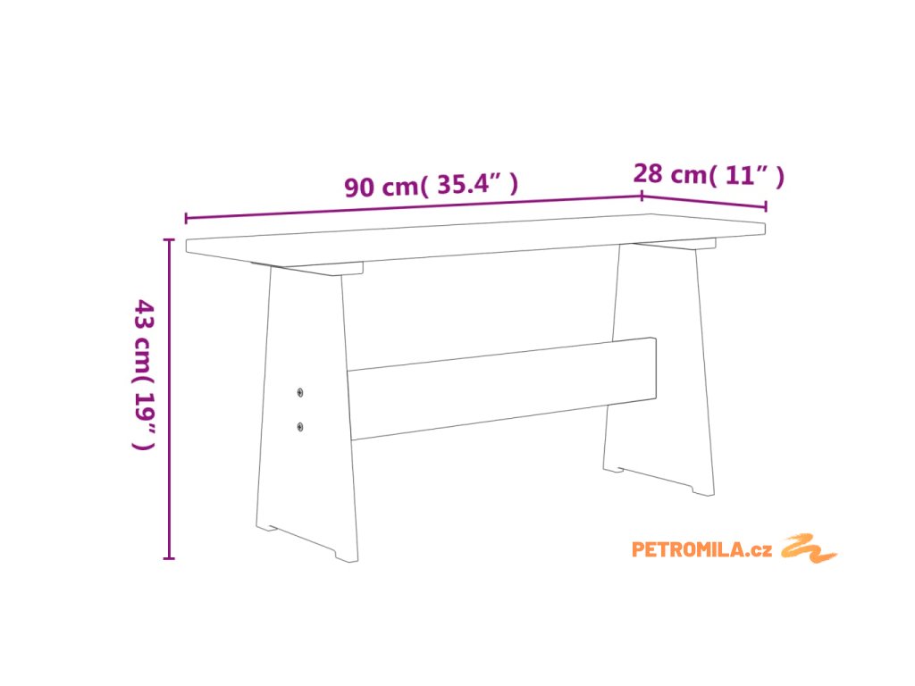 - Rozměry lavice: 92 x 28 x 43 cm (D x Š x V)