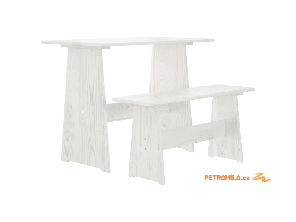 Jídelní stůl s lavicí REINE bílý masivní borové dřevo