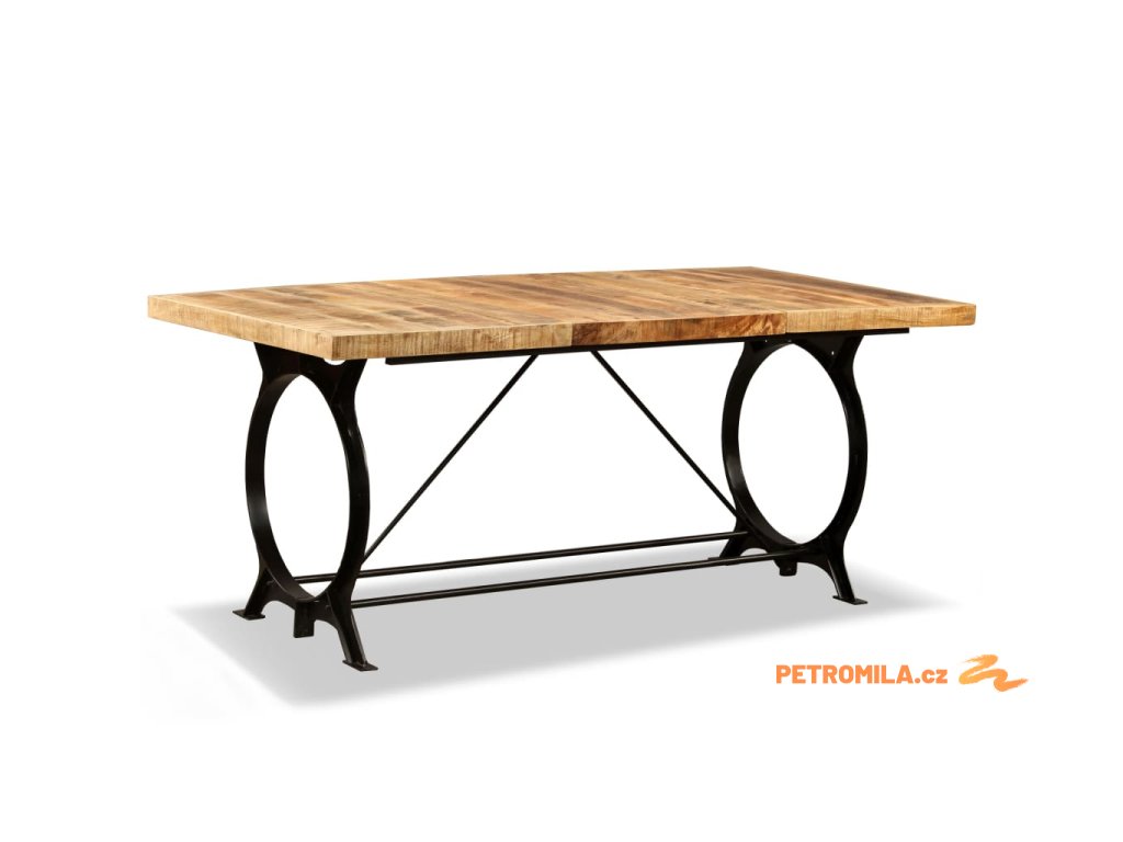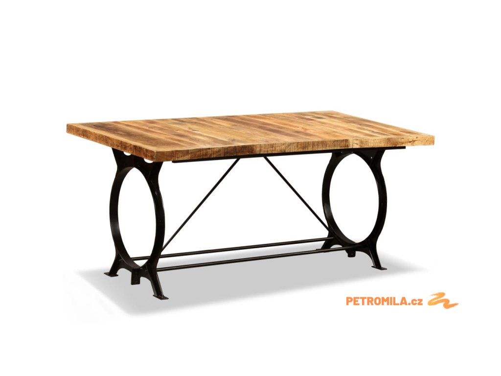 Jídelní stůl je vyroben z masivního mangovníkového dřeva, které je pevné a odolné a k tomu i krásně vypadá. Řemeslné zpracování navíc podtrhuje jeho retro vzhled. Jídelní stůl byl vyroben čistě ručně a každá fáze jeho výroby byla provedena s největší péčí, ať už se jedná o leštění nebo lakování. Industriálně laděný ocelový rám a konstrukce vám pak zaručí, že se stůl nebude kývat.
