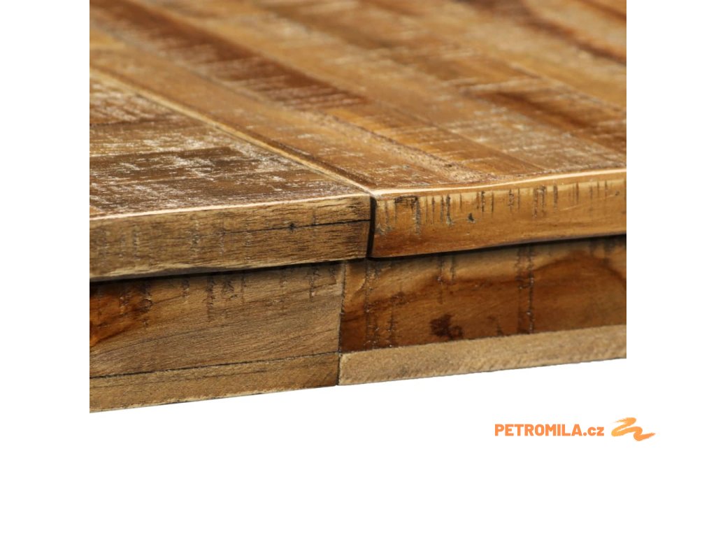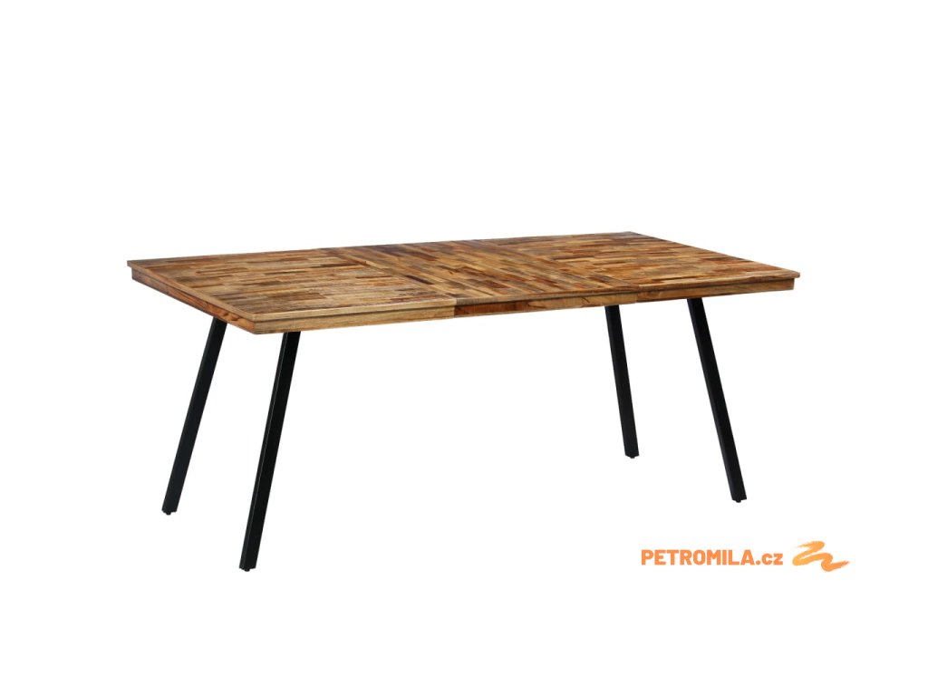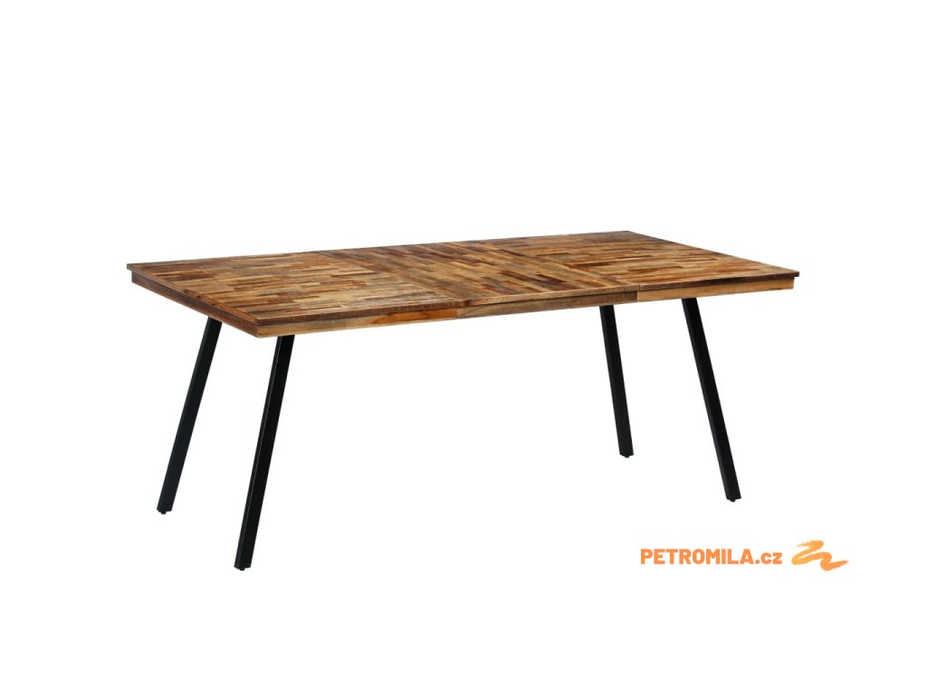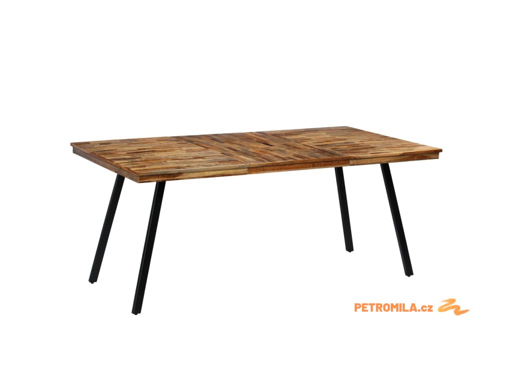 Stolní deska je vyrobena z recyklovaného starého teaku, který je velmi pevný a odolný a propůjčuje produktu jeho přírodní vzhled a půvab. Každá fáze výrobního procesu je prováděna s největší pečlivostí, ať se jedná o leštění či lakování. Překrásná kresba dřeva činí každý kus nábytku zcela jedinečným a lehce odlišným od ostatních. Silné ocelové nohy přispívají nejen ke stabilitě stolu, ale zdůrazňují také jeho industriální styl. Montáž je snadná.