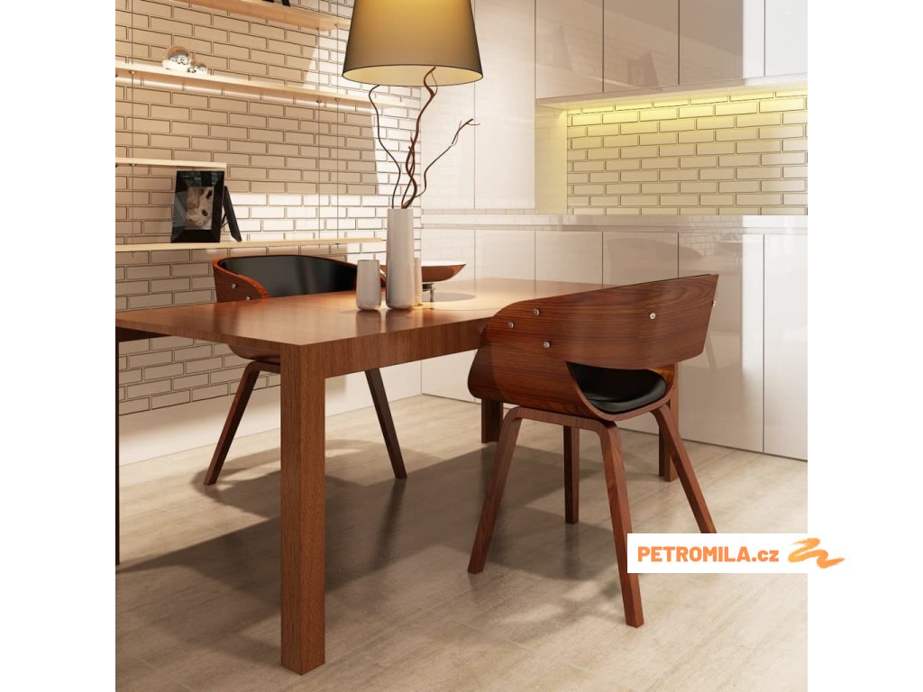 Jídelní židle 2 ks hnědé ohýbané dřevo a umělá kůže