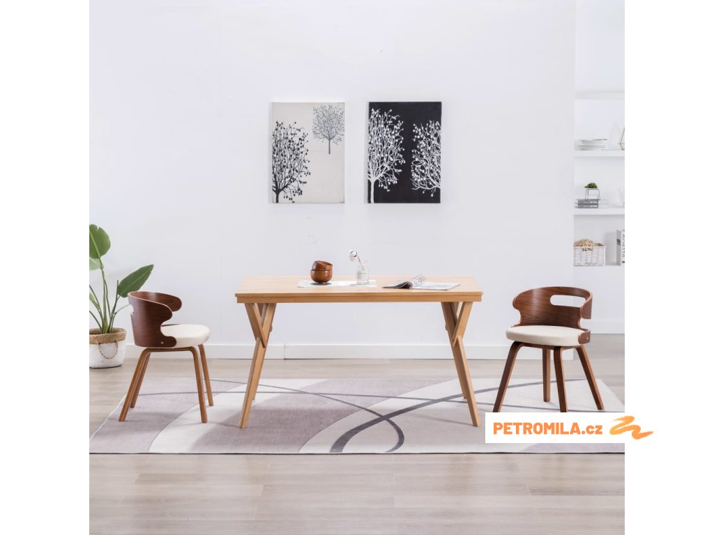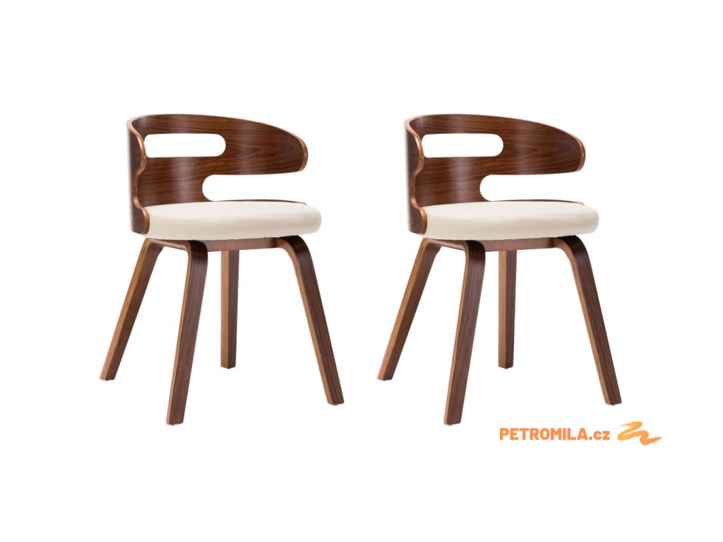 Jídelní židle 2 ks krémové ohýbané dřevo a umělá kůže
