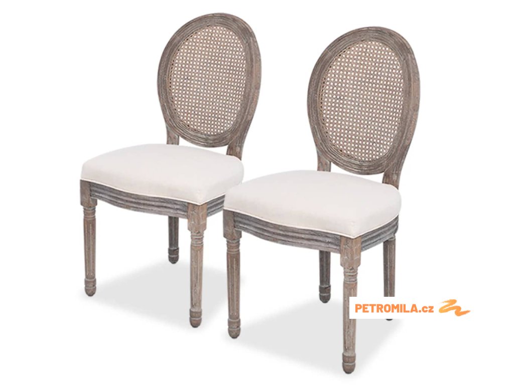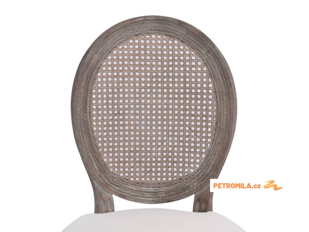 Silnou vrstvou pěny polstrované sedačky jsou čalouněné v lněné látce. Tyto plátěné jídelní židle mají ratanové opěradlo, které jim dodává rustikální šarm. Dřevěné rámy a nohy dělají židle velmi stabilními a odolnými.