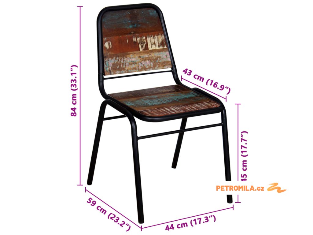 Tyto židle ve vintage stylu jsou vyrobené z masivního recyklovaného dřeva, což znamená, že každý kus nábytku je jedinečný a lehce se odlišuje od ostatních. Nábytek vyrobený z použitého dřeva má vlastnosti různých druhů dřeva, jako je teak, mangovník a akácie. Recyklované dřevo je masivní, bytelné, odolné a krásné. Známky opotřebení a odhalená struktura dřeva dodávají každému kusu jedinečnost a lehkou odlišnost od ostatních kusů.