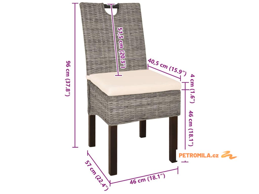 Rámy z mangovníkového dřeva a vyplétání z pravého ratanu přispívají nejen k pevné konstrukci židlí, ale také k jejich příjemnému estetickému vzhledu. Ratanem vyplétané sedáky jsou velmi pohodlné a snadno se čistí. Tlusté polstry jsou přizpůsobivé a jejich snímatelné potahy se dají prát. Pokud hledáte nábytek, který by se hodil do vaší kuchyně nebo jídelny, tato atraktivní ručně vyplétaná židle bude skvělou volbou.