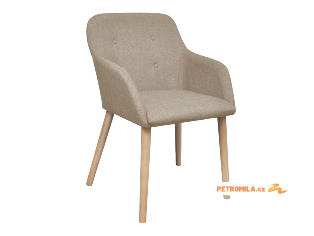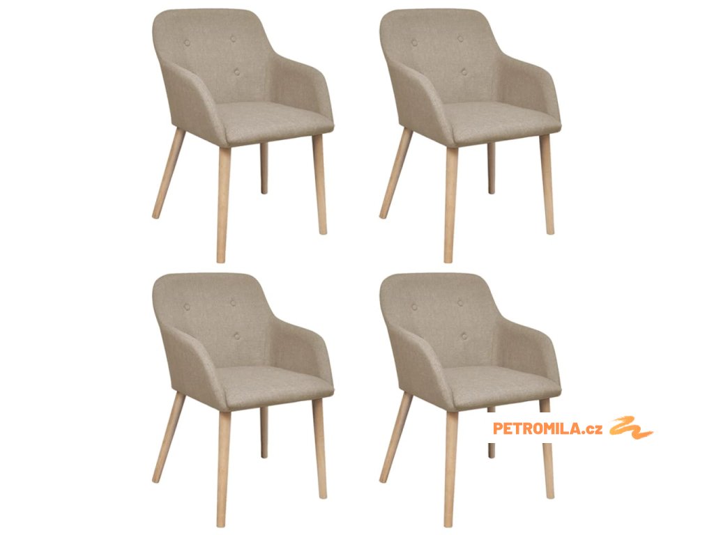Jídelní židle 4 ks béžové textil a masivní dubové dřevo