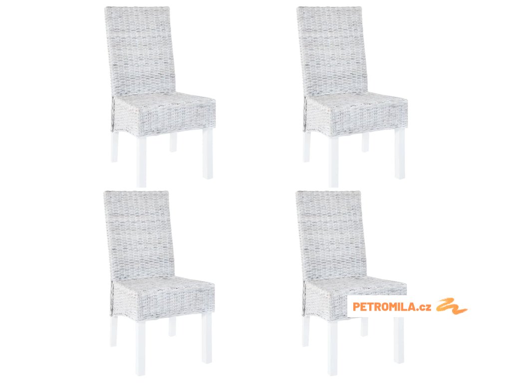 Jídelní židle 4 ks bílé ratan kubu a mangovníkové dřevo