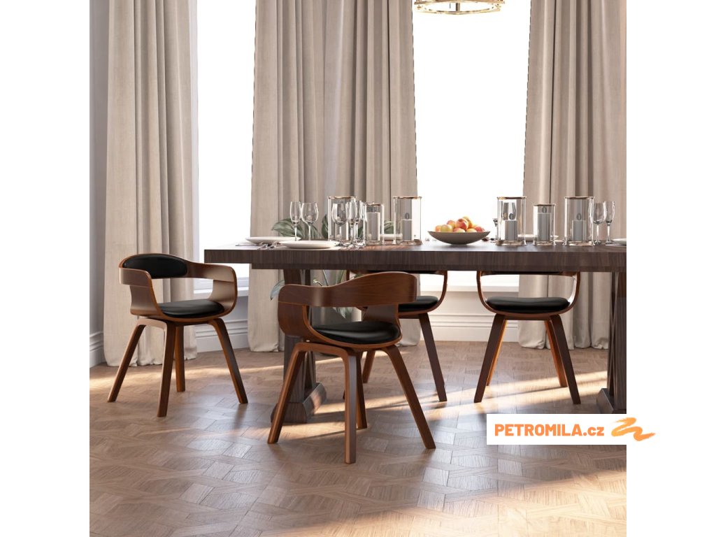 Jídelní židle 4 ks černé ohýbané dřevo a umělá kůže