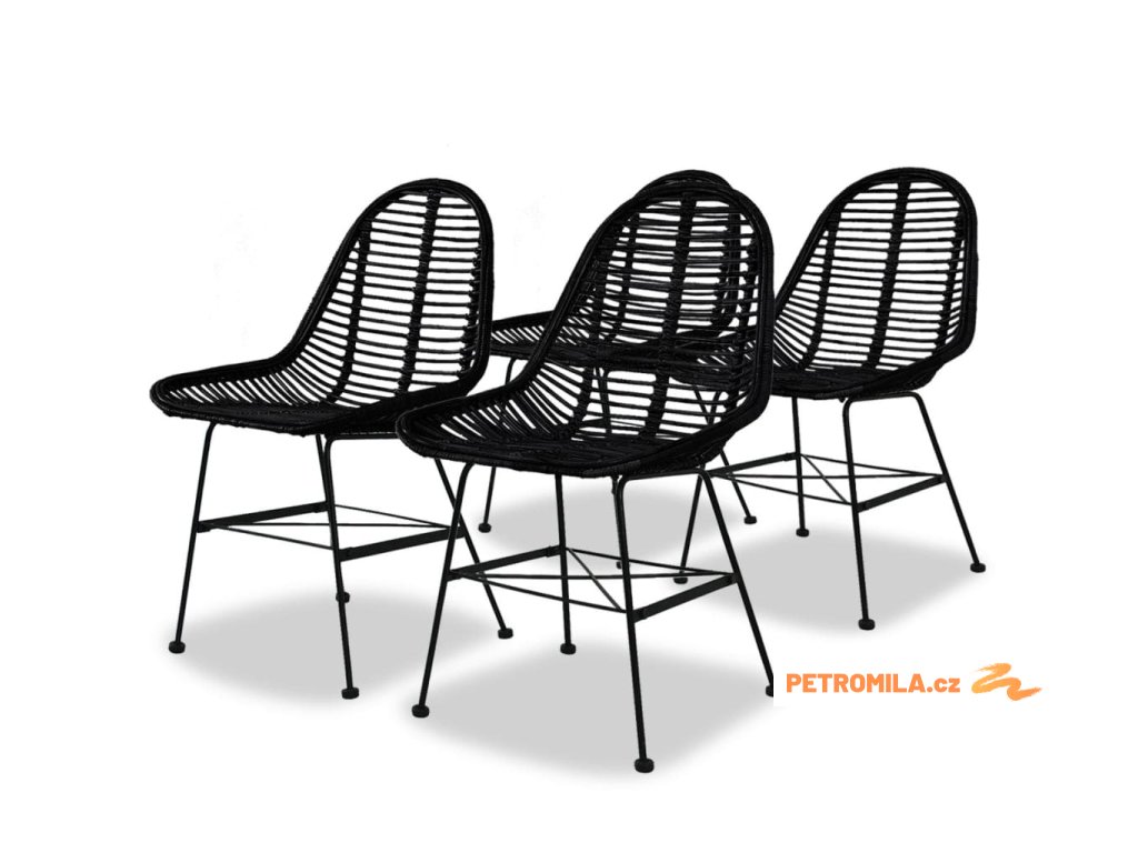 Jídelní židle 4 ks černé přírodní ratan