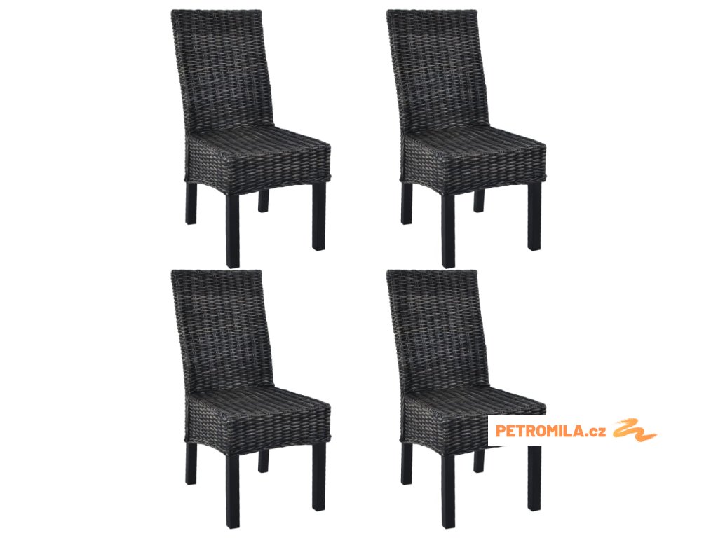 Jídelní židle 4 ks černé ratan kubu a mangovníkové dřevo