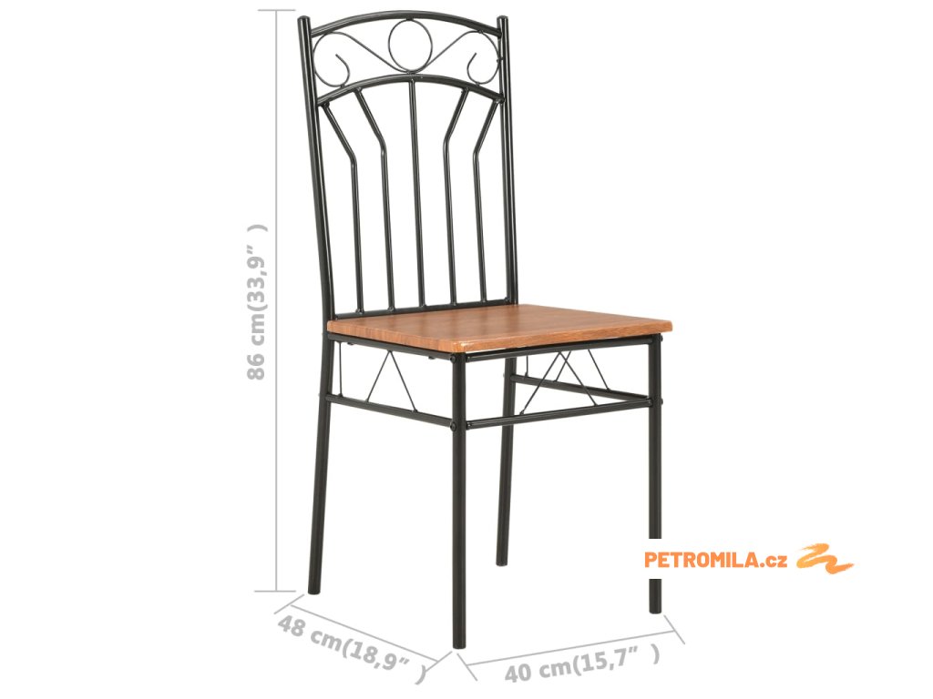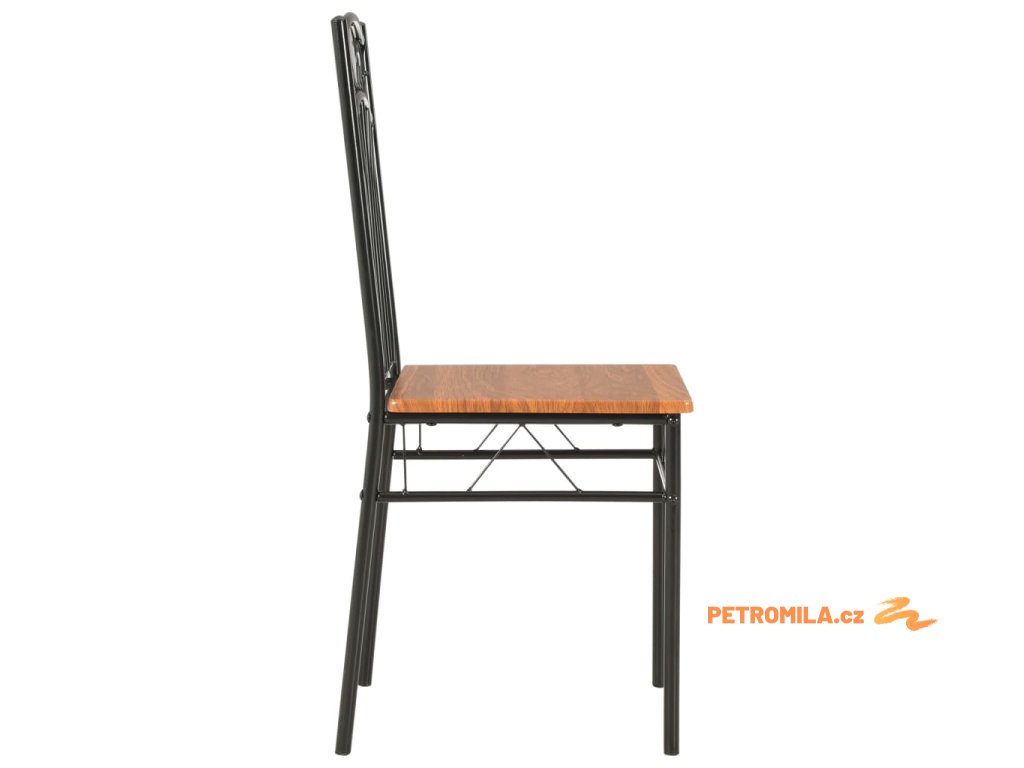 Industriálně vyhlížející židle jsou vyrobené z 15 mm silné desky MDF a vysoce kvalitní oceli, což jim zajišťuje mimořádnou stabilitu a odolnost. Hladká povrchová lazura také usnadňuje čištění nábytku. Ergonomický tvar židlí vám při sezení poskytne maximální pohodlí.