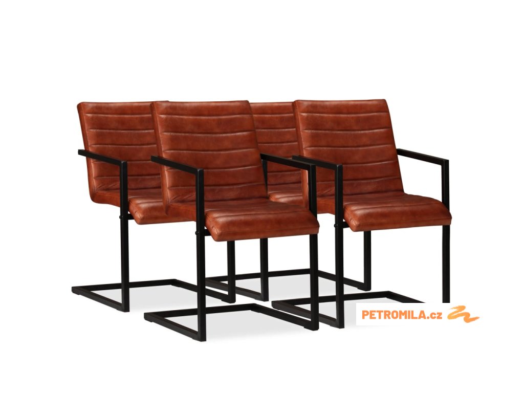 Jídelní židle 4 ks hnědé pravá kůže