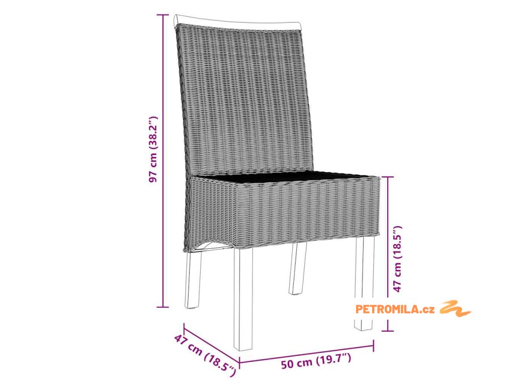 Upozornění: Židle jsou ručně pletené z pravého ratanu, proto se jejich odstín může kus od kusu lehce lišit.