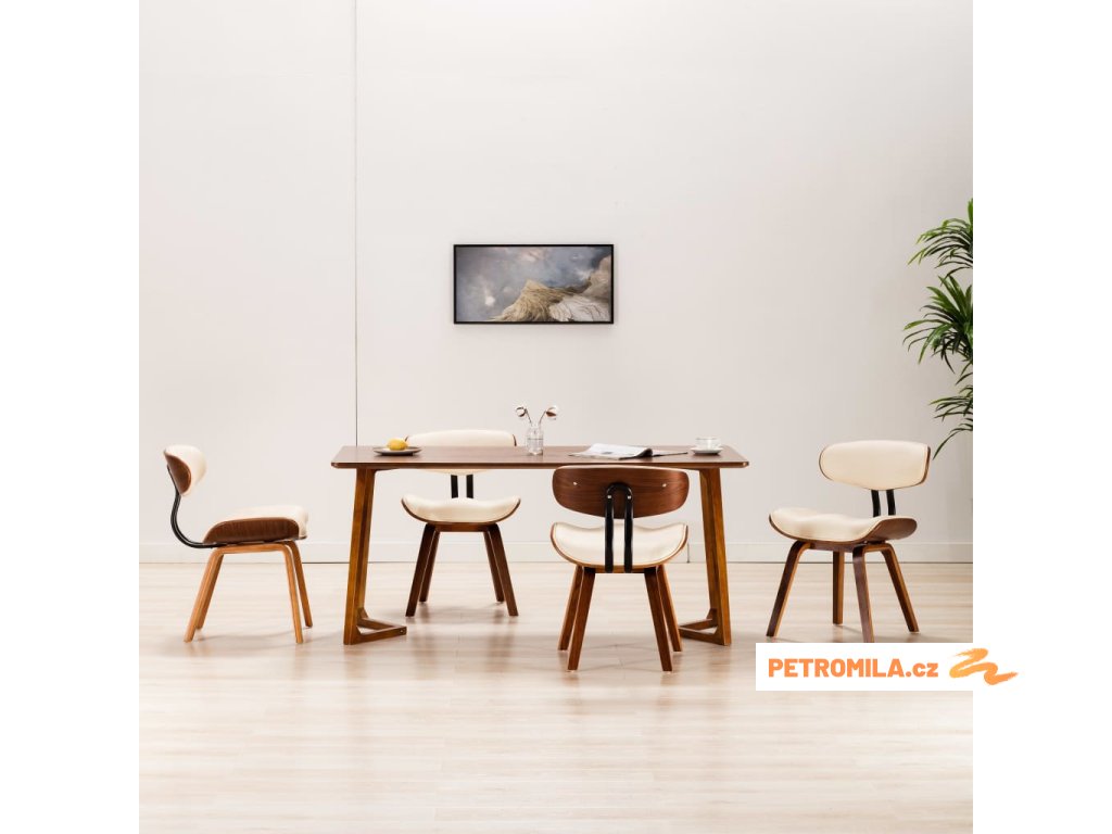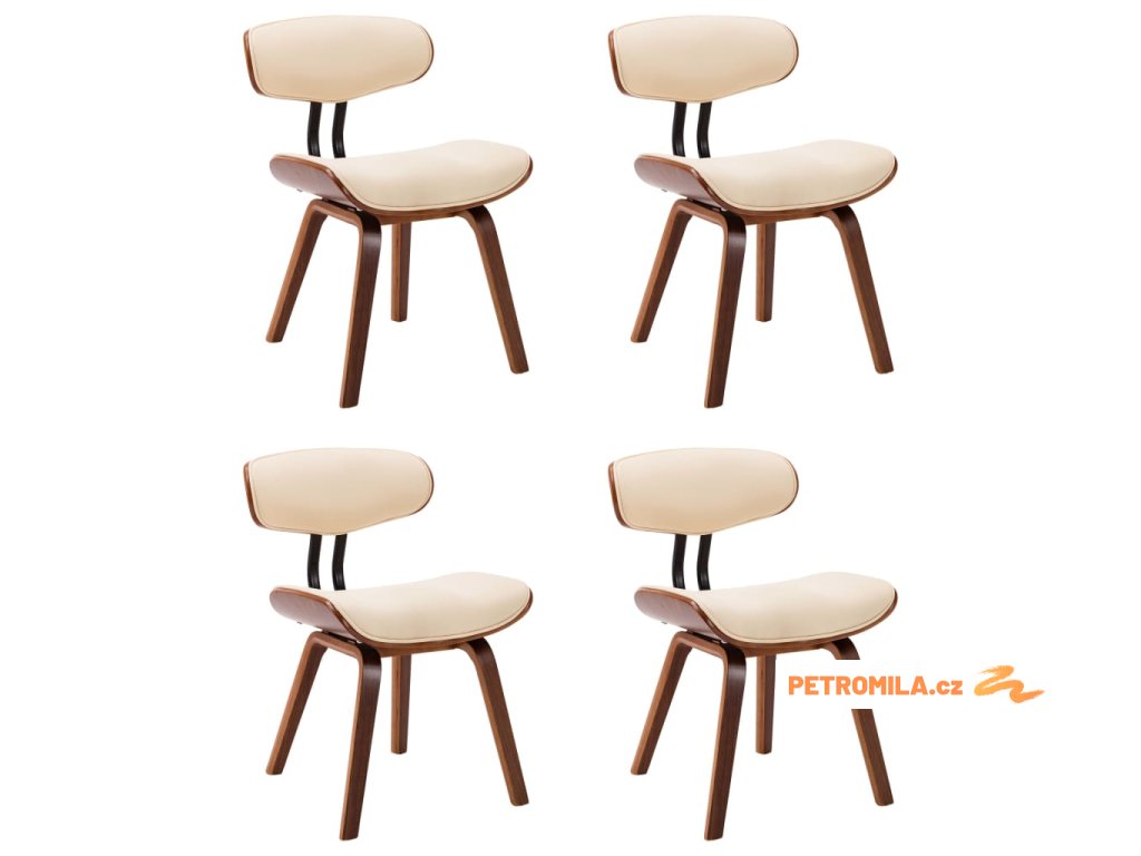 Jídelní židle 4 ks krémové ohýbané dřevo a umělá kůže