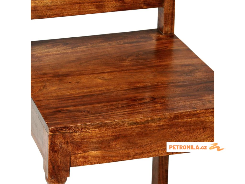Židle jsou vyrobeny z masivního akáciového dřeva. Akácie je odolné tropické tvrdé dřevo. Tyto židle jsou celé ručně vyráběné a krásná kresba dřeva propůjčuje každému kusu nábytku jeho jedinečný a od všech ostatních lehce odlišný vzhled. Jídelní židle se snadno čistí vlhkým hadříkem. Snadno se sestavuje.
