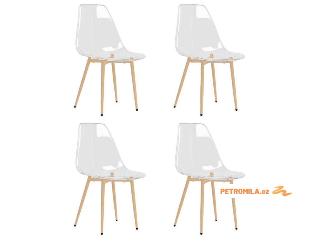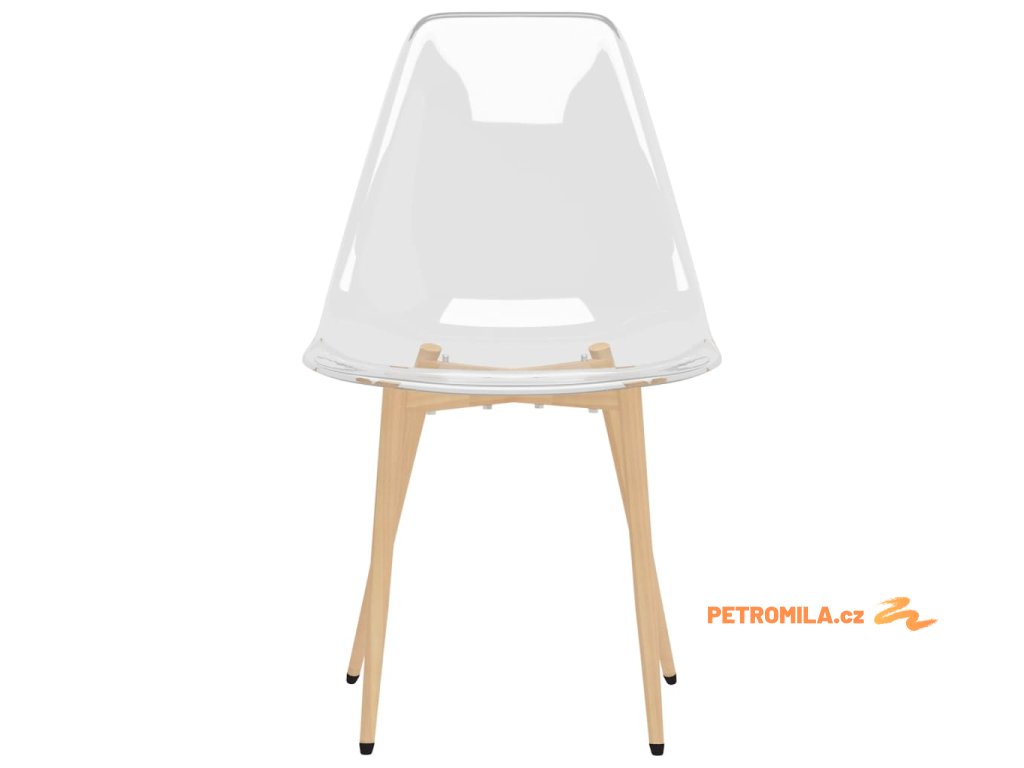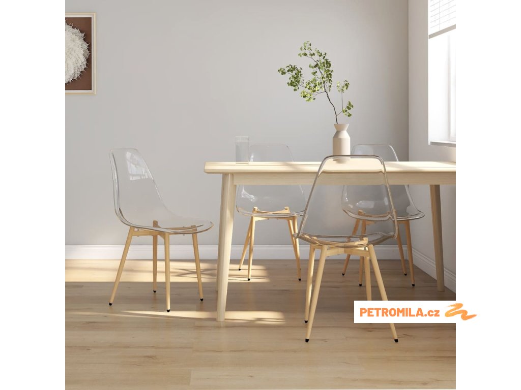 Jídelní židle má průhledný sedák s ladnými liniemi, což jí dodává speciální vzhled. Židle jsou vyrobené z PET, takže se snadno čistí. Kovové nohy jim navíc zajišťují mimořádnou odolnost. Kuchyňské židle mají ergonomicky zaoblené opěradlo, abyste si mohli při sezení užívat maximální pohodlí. Krytky na nohy chrání vaši podlahu před poškrábáním a zároveň přispívají k lepší stabilitě.