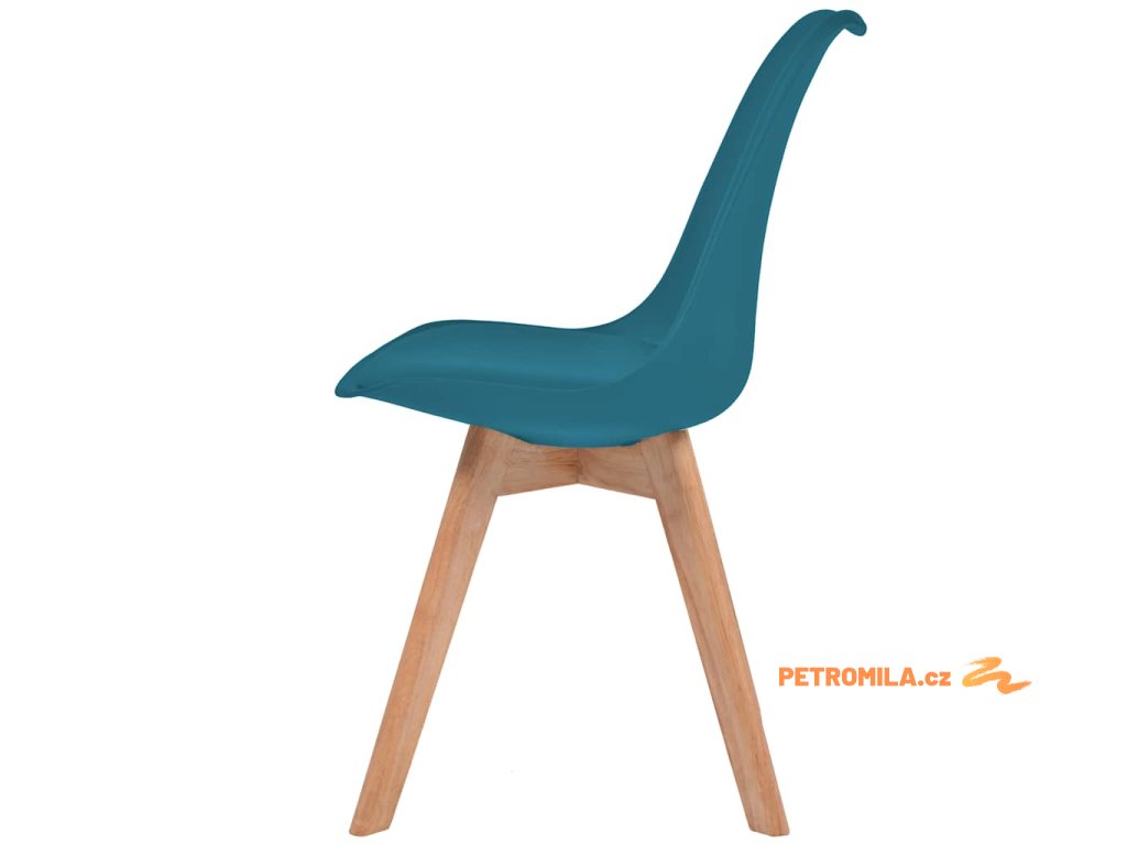 Židle mají ergonomicky tvarovaný sedák s integrovaným opěradlem, které vyniká svým moderním zaobleným tvarem. Jsou velmi pohodlné, neboť mají integrované podušky na sedák z umělé kůže. Masivní dřevěné nohy dodávají těmto atraktivním židlím na robustnosti a odolnosti. Sestavení je opravdu snadné.