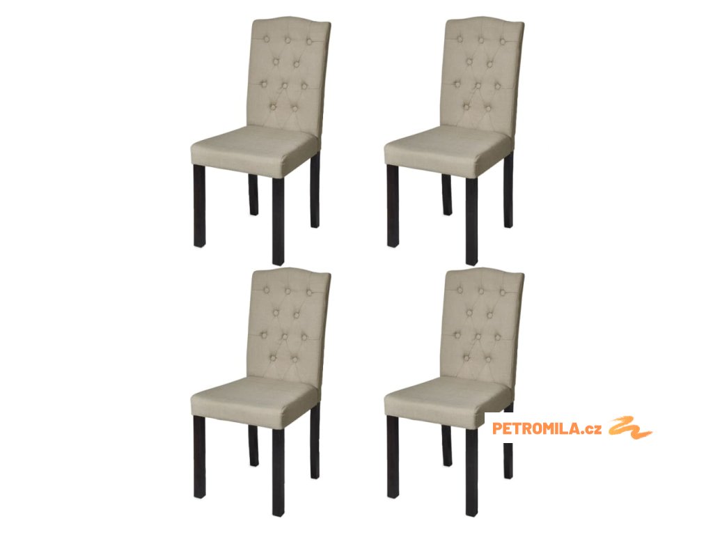 Tato sada 4 vkusných židlí v chesterfield provedení se vyznačuje klasickým designem a decentní elegancí. Komfortní textilní čalounění s plátěným vzhledem nabízí příjemné posezení a hodí se perfektně do velkého množství stylů zařízení interiérů.