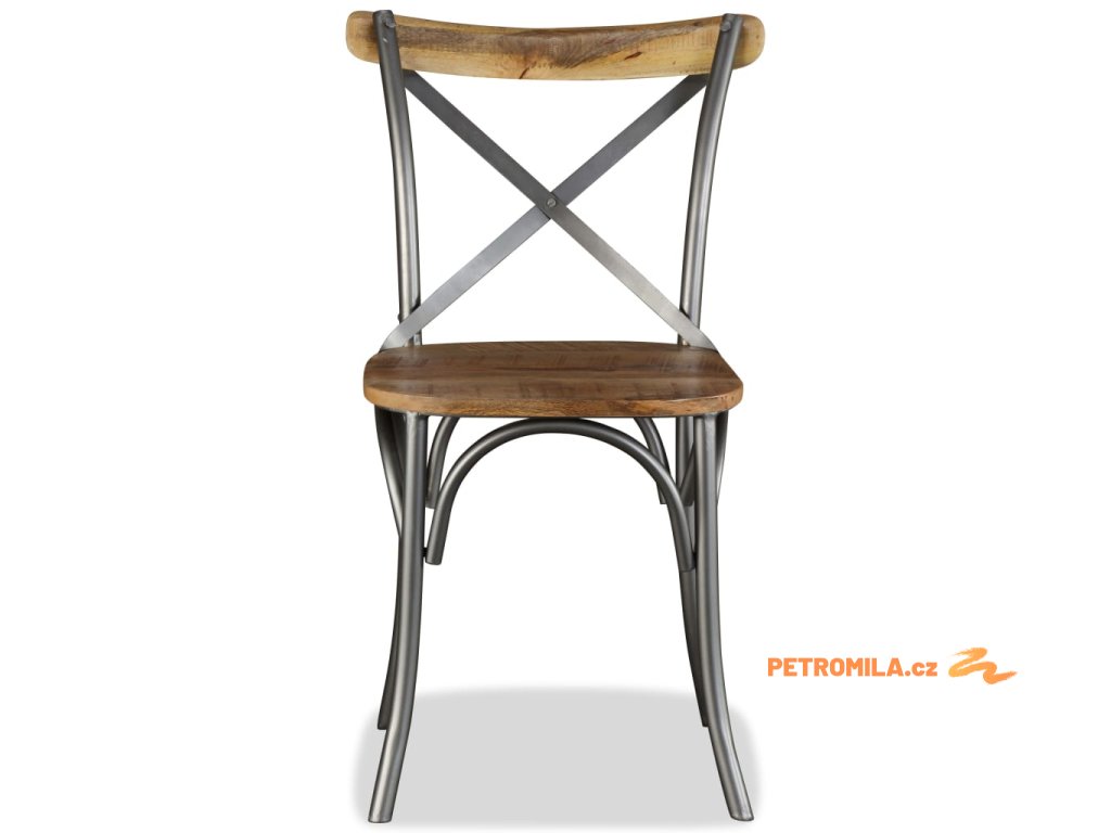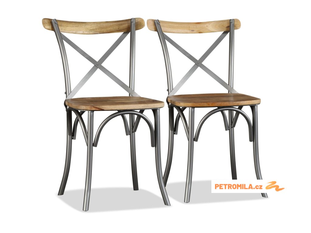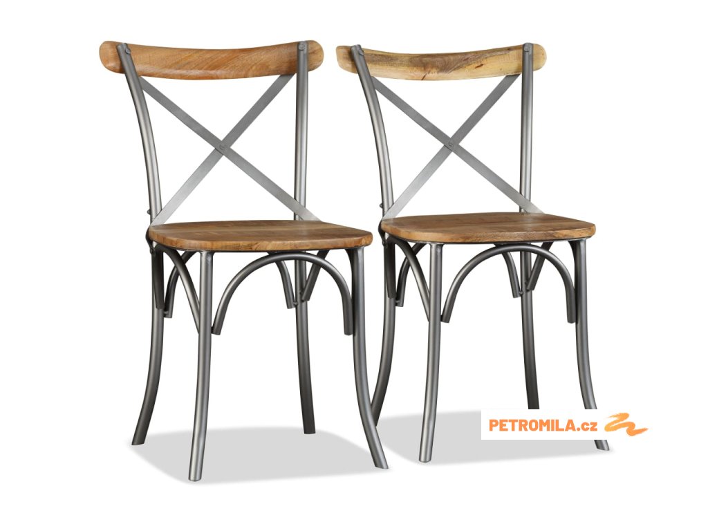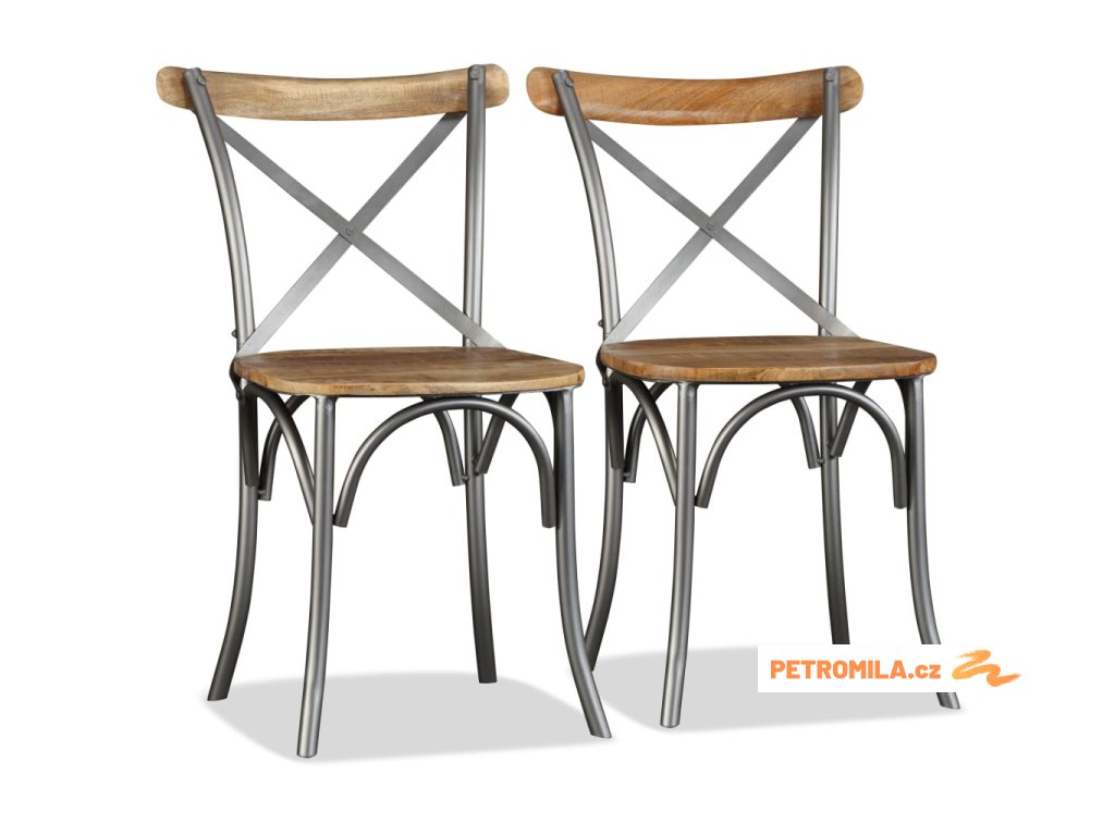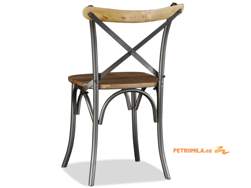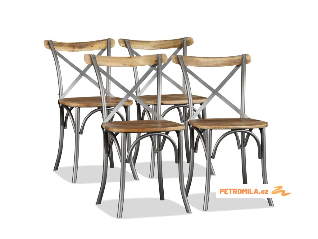 Jídelní židle 4ks masivní mangovník ocelové opěradlo s křížem