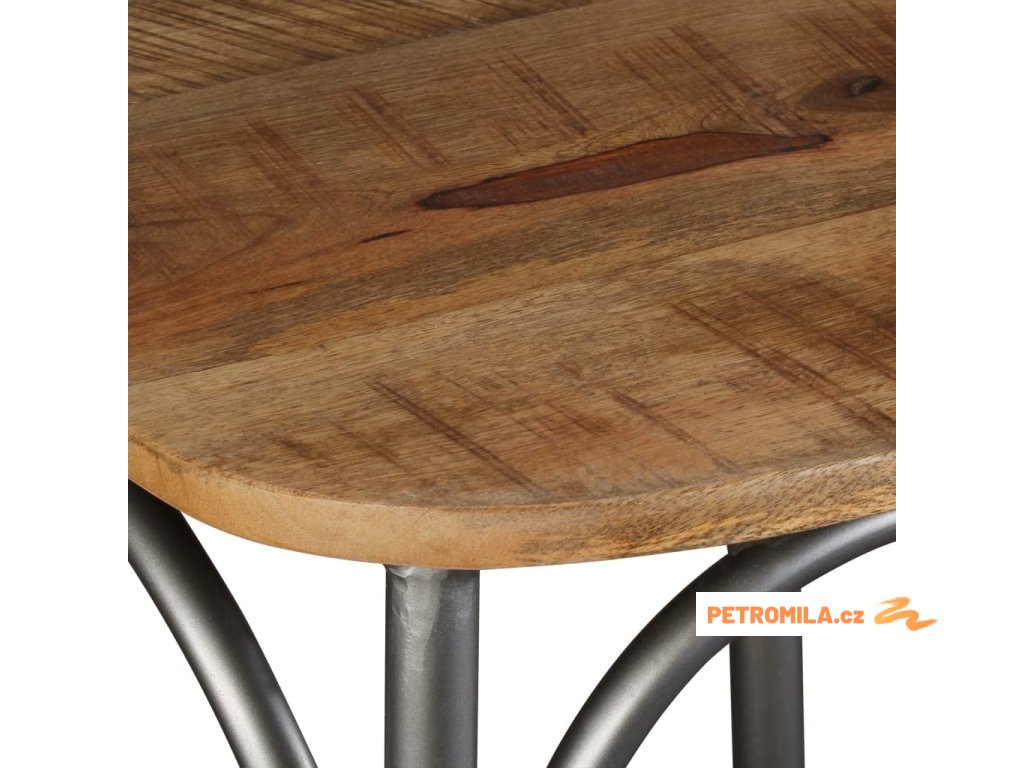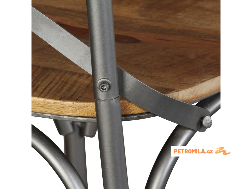 - Materiál: masivní mangovníkové dřevo (leštěné a lakované) + ocel s práškovým nástřikem