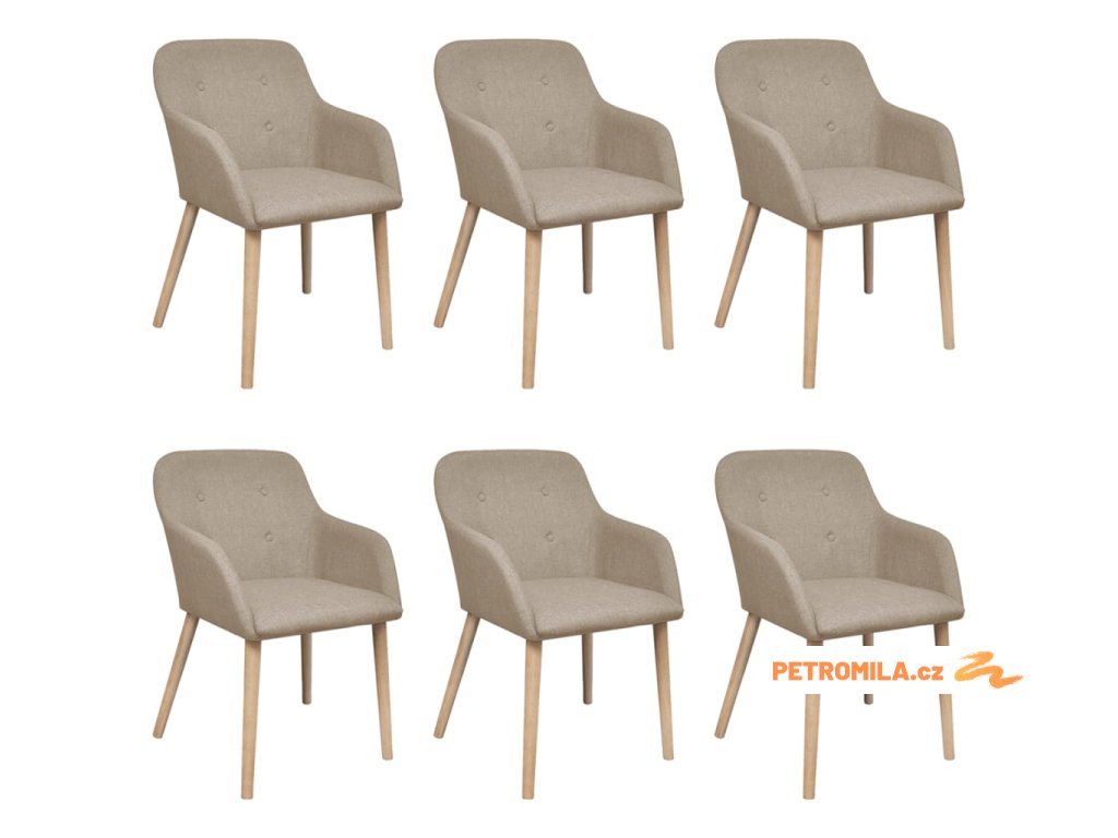 Jídelní židle 6 ks béžové textil a masivní dubové dřevo