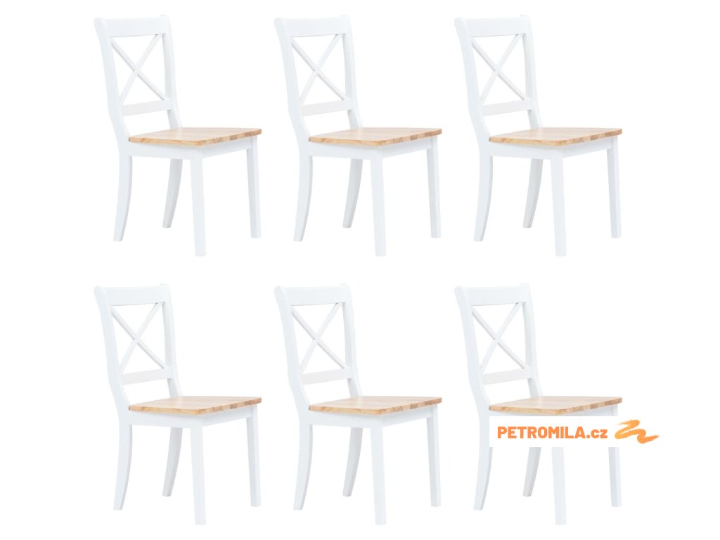 Jídelní židle 6 ks bílé a světlé dřevo masivní kaučukovník