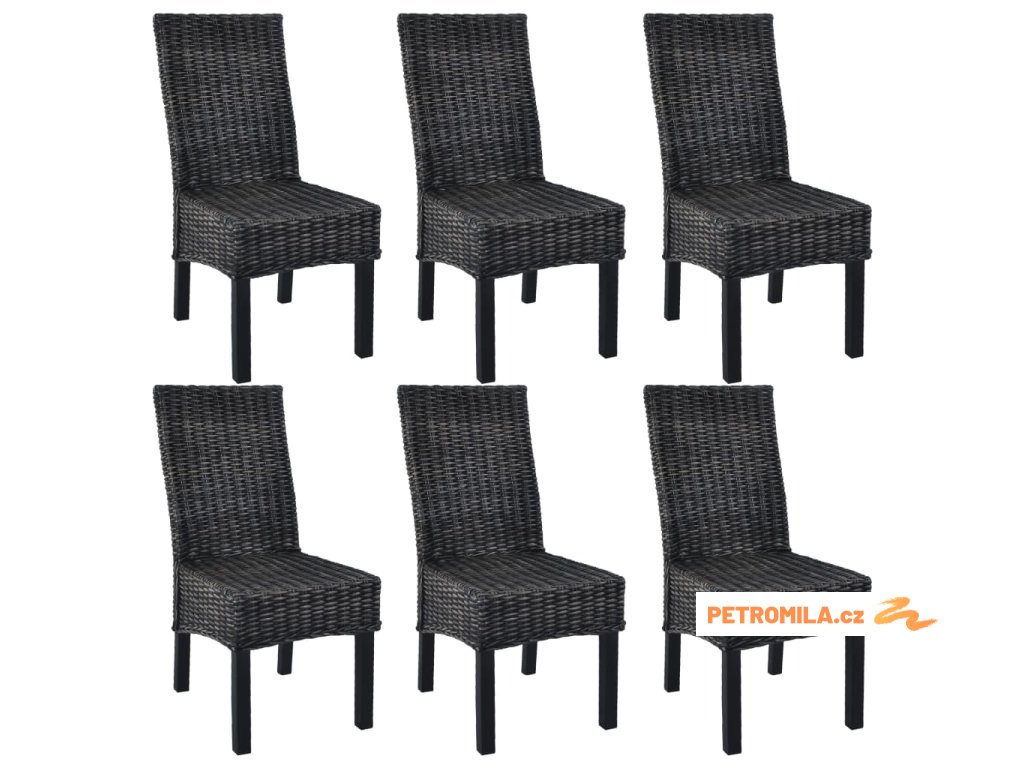 Jídelní židle 6 ks černé ratan kubu a mangovníkové dřevo