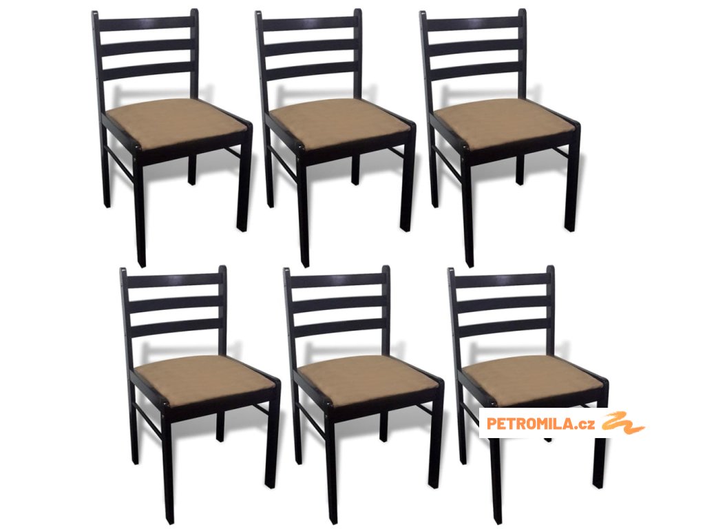 Jídelní židle 6 ks hnědé masivní dřevo a samet