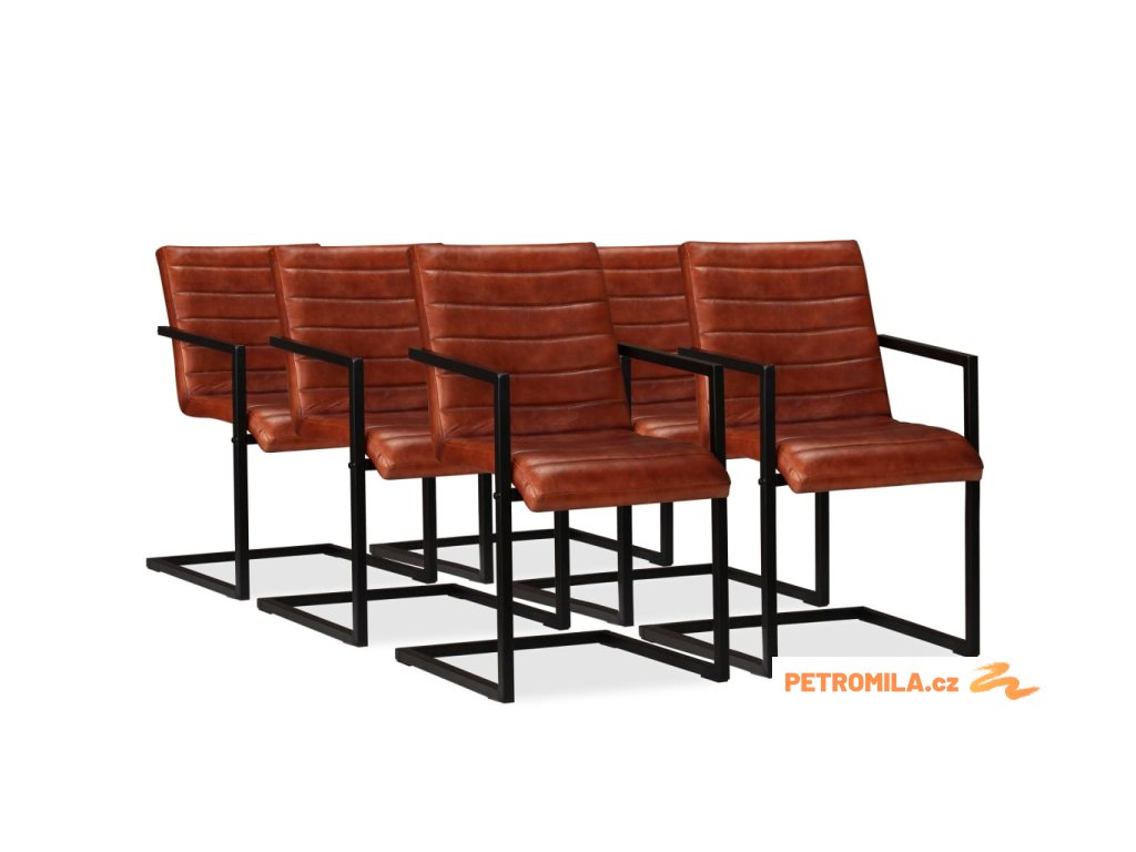 Jídelní židle 6 ks hnědé pravá kůže