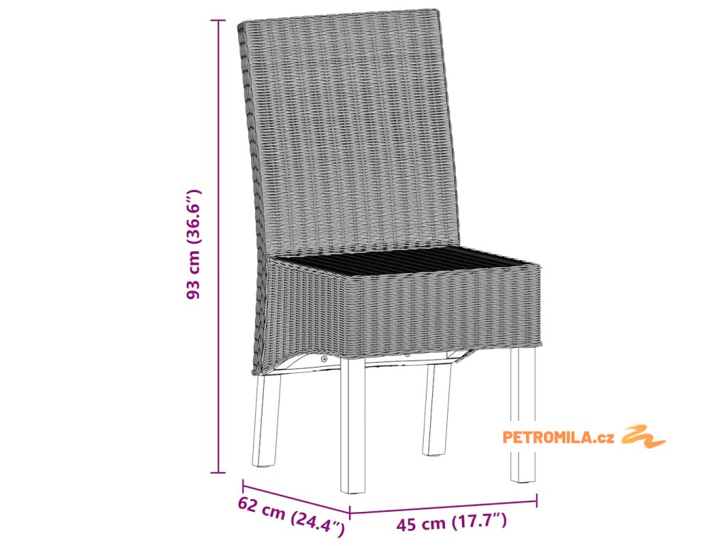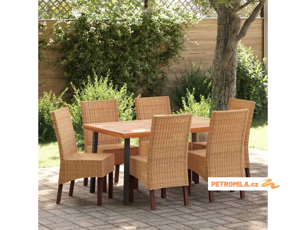 Upozornění: Židle jsou ručně pletené z pravého ratanu, proto se jejich odstín může kus od kusu lehce lišit. Stůl není součástí dodávky.