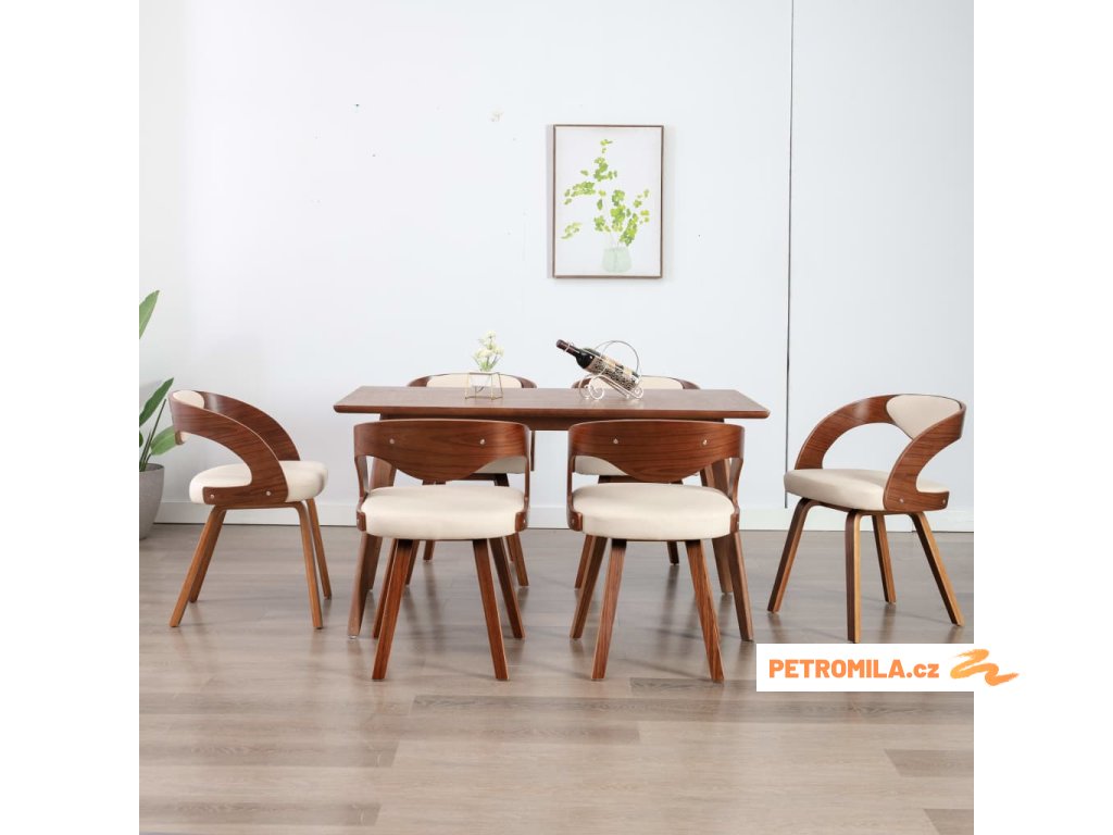 Jídelní židle 6 ks krémové ohýbané dřevo a umělá kůže