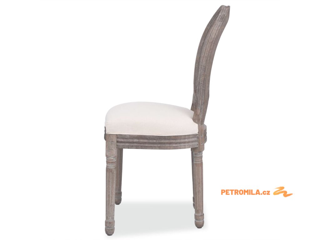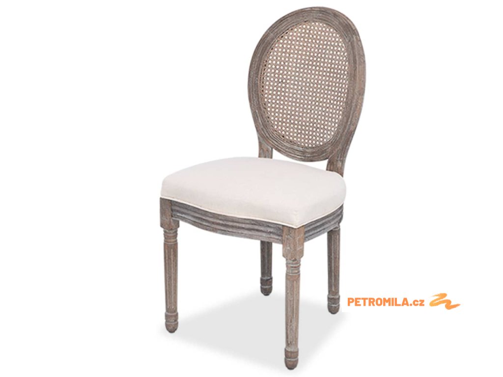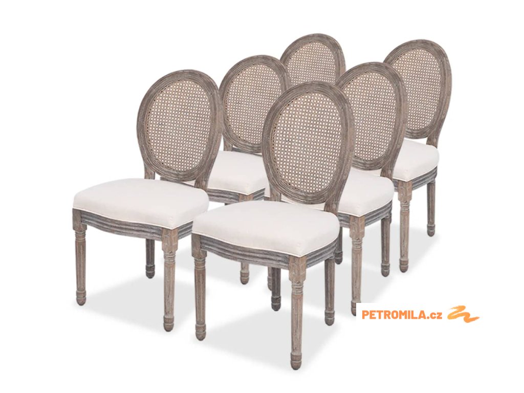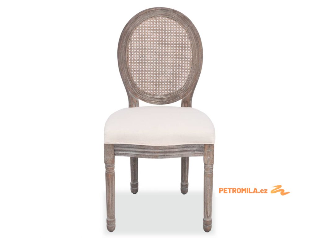 Silnou vrstvou pěny polstrované sedačky jsou čalouněné v lněné látce. Tyto plátěné jídelní židle mají ratanové opěradlo, které jim dodává rustikální šarm. Dřevěné rámy a nohy dělají židle velmi stabilními a odolnými.