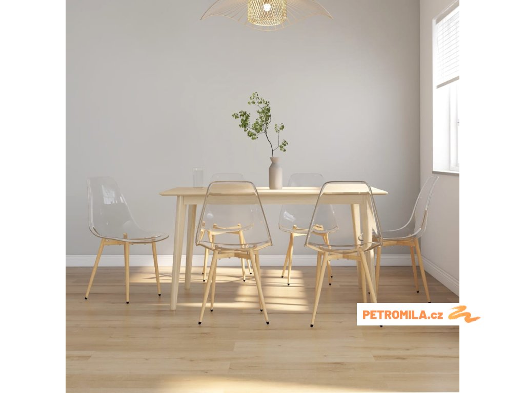 Jídelní židle má průhledný sedák s ladnými liniemi, což jí dodává speciální vzhled. Židle jsou vyrobené z PET, takže se snadno čistí. Kovové nohy jim navíc zajišťují mimořádnou odolnost. Kuchyňské židle mají ergonomicky zaoblené opěradlo, abyste si mohli při sezení užívat maximální pohodlí. Krytky na nohy chrání vaši podlahu před poškrábáním a zároveň přispívají k lepší stabilitě.