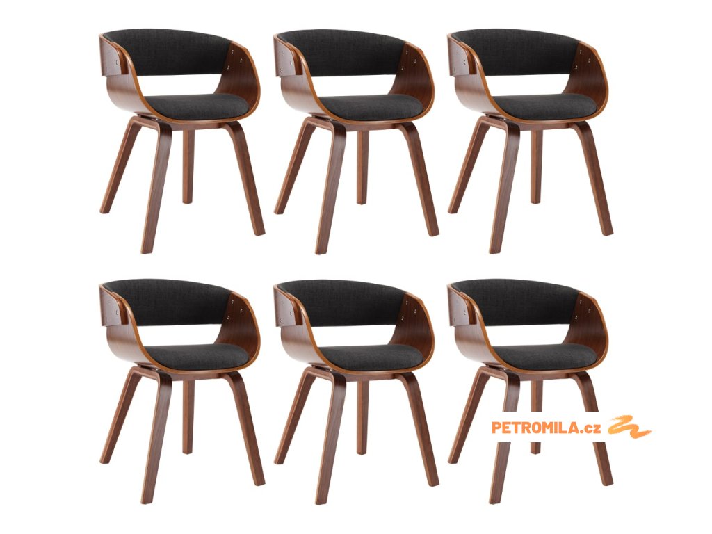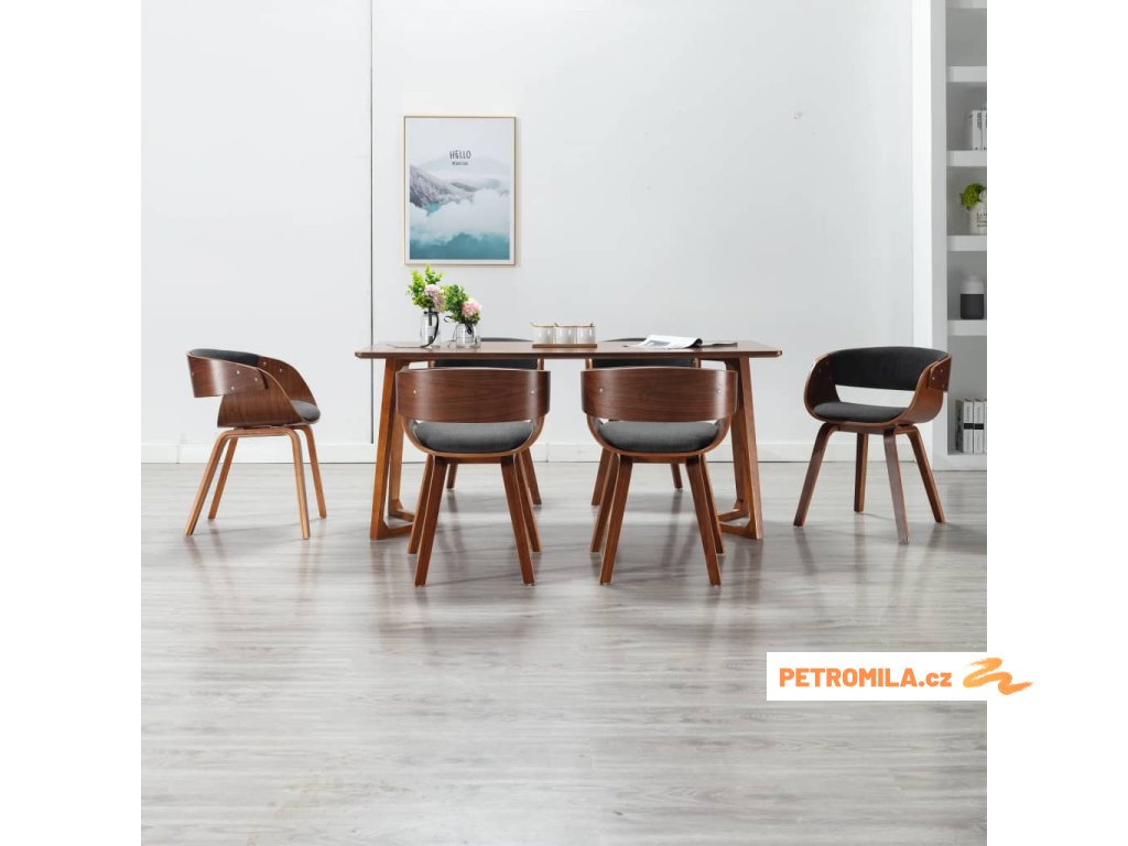 Jídelní židle 6 ks šedé ohýbané dřevo a textil