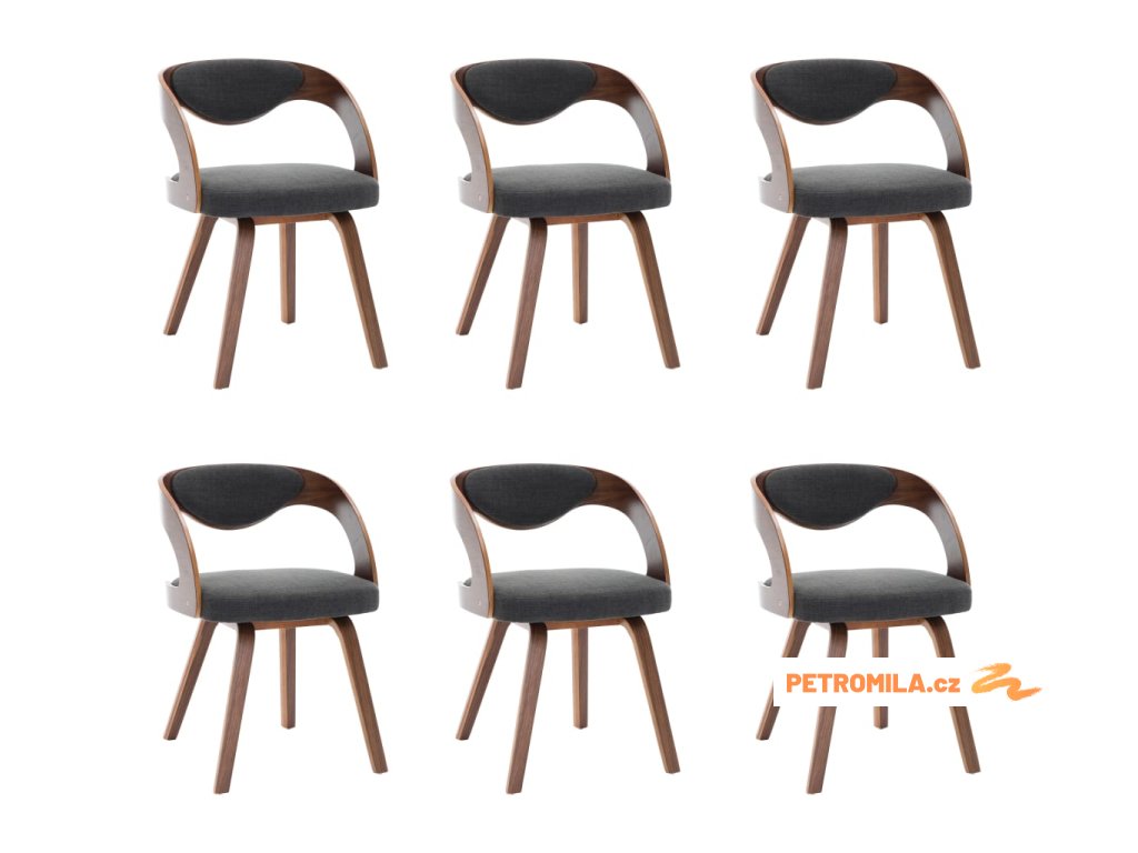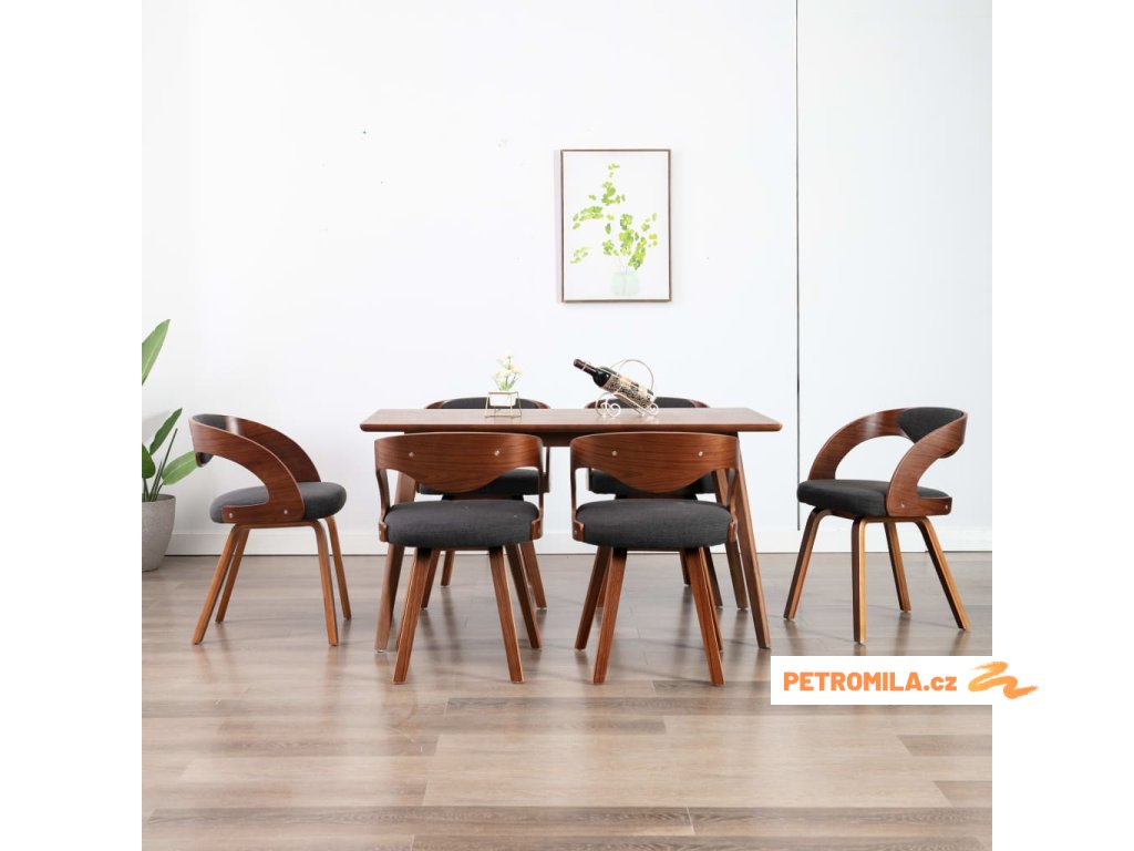 Jídelní židle 6 ks tmavě šedé ohýbané dřevo a textil