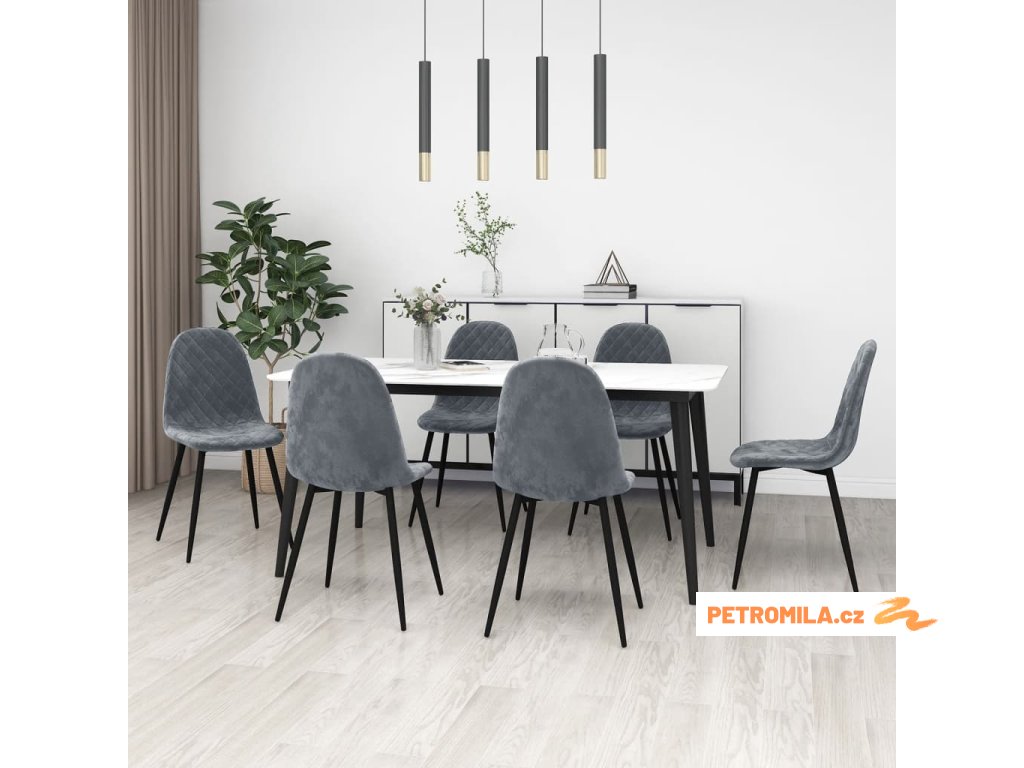 Jídelní židle 6 ks tmavě šedé samet