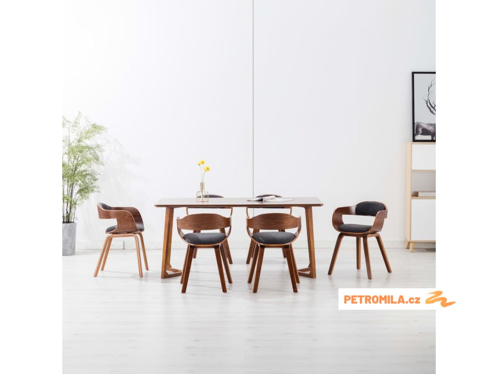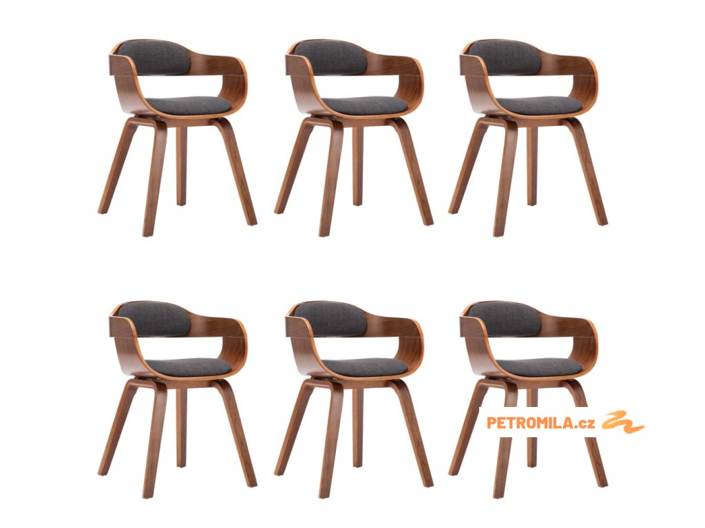 Jídelní židle 6 ks tmavě šedé textil a ohýbané dřevo