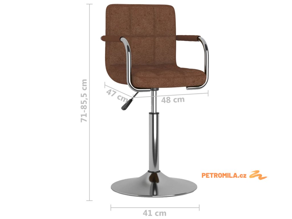 Kuchyňská židle je čalouněná pevnou látkou, která vám zajistí optimální pohodlí. Chromovaný ocelový rám zajišťuje vysokou odolnost a stabilitu. Výšku otočné jídelní židle jednoduše upravíte pomocí mechanismu s plynovým pístem, jedná se proto o dokonalý doplněk do každého funkčního baru či jídelny. Židle se také otáčí o 360 stupňů, což jí dodává skvělou flexibilitu.