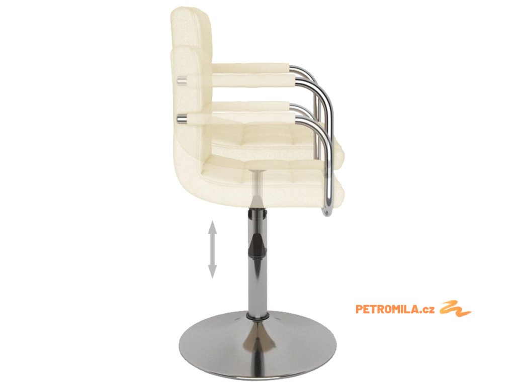 Kuchyňská židle je čalouněná pevnou látkou, která vám zajistí optimální pohodlí. Chromovaný ocelový rám zajišťuje vysokou odolnost a stabilitu. Výšku otočné jídelní židle jednoduše upravíte pomocí mechanismu s plynovým pístem, jedná se proto o dokonalý doplněk do každého funkčního baru či jídelny. Židle se také otáčí o 360 stupňů, což jí dodává skvělou flexibilitu.