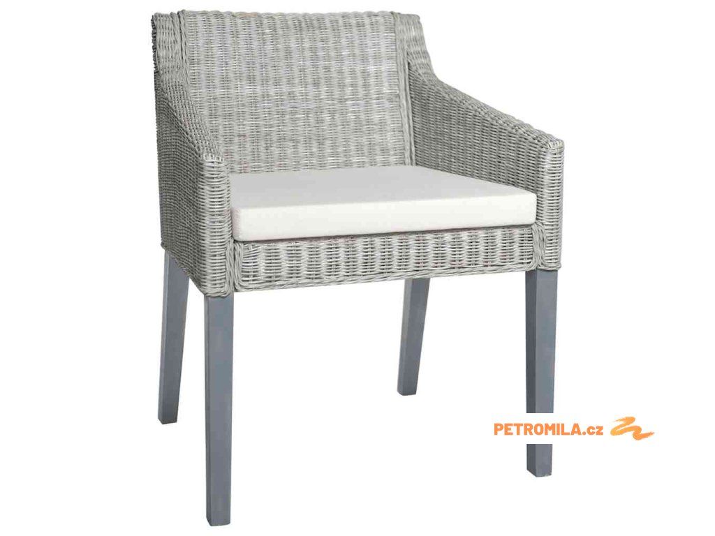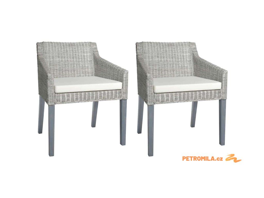 Jídelní židle s poduškami 2 ks šedé přírodní ratan