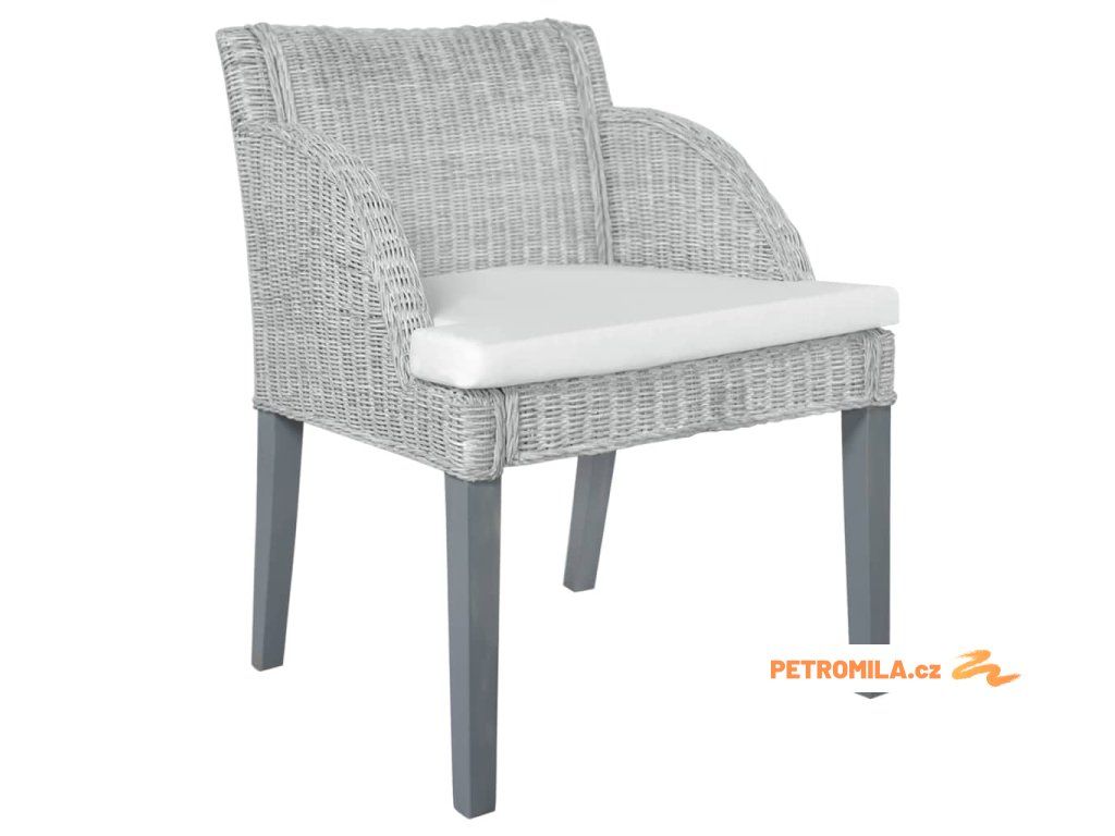 Jídelní židle s poduškou šedá přírodní ratan