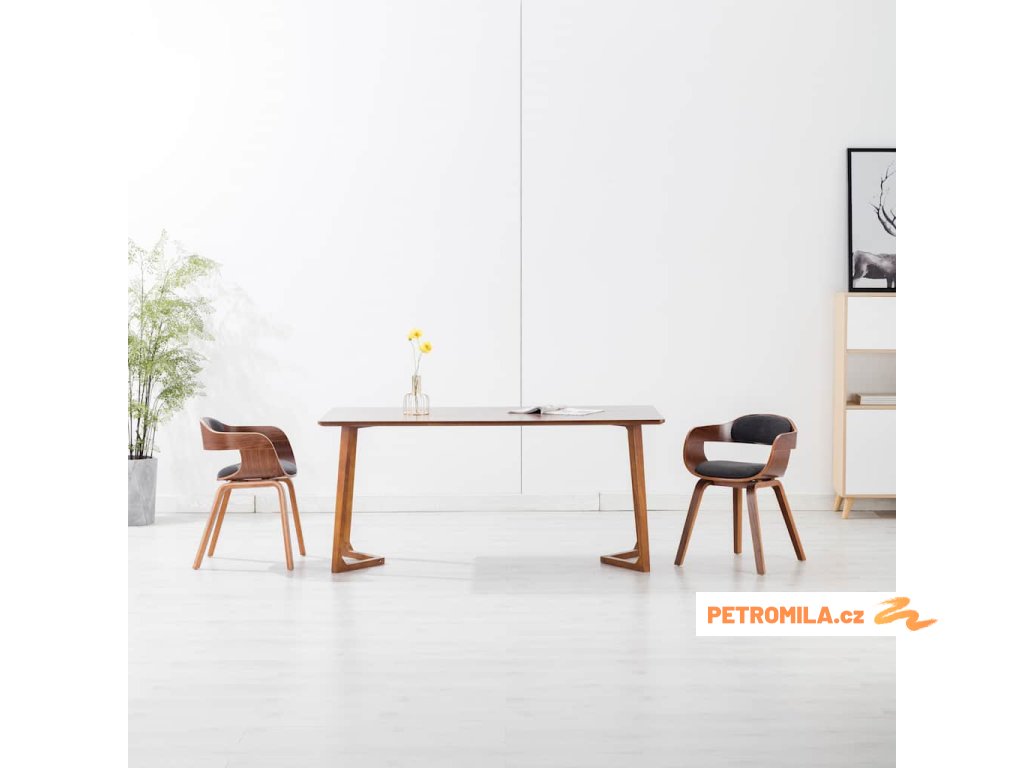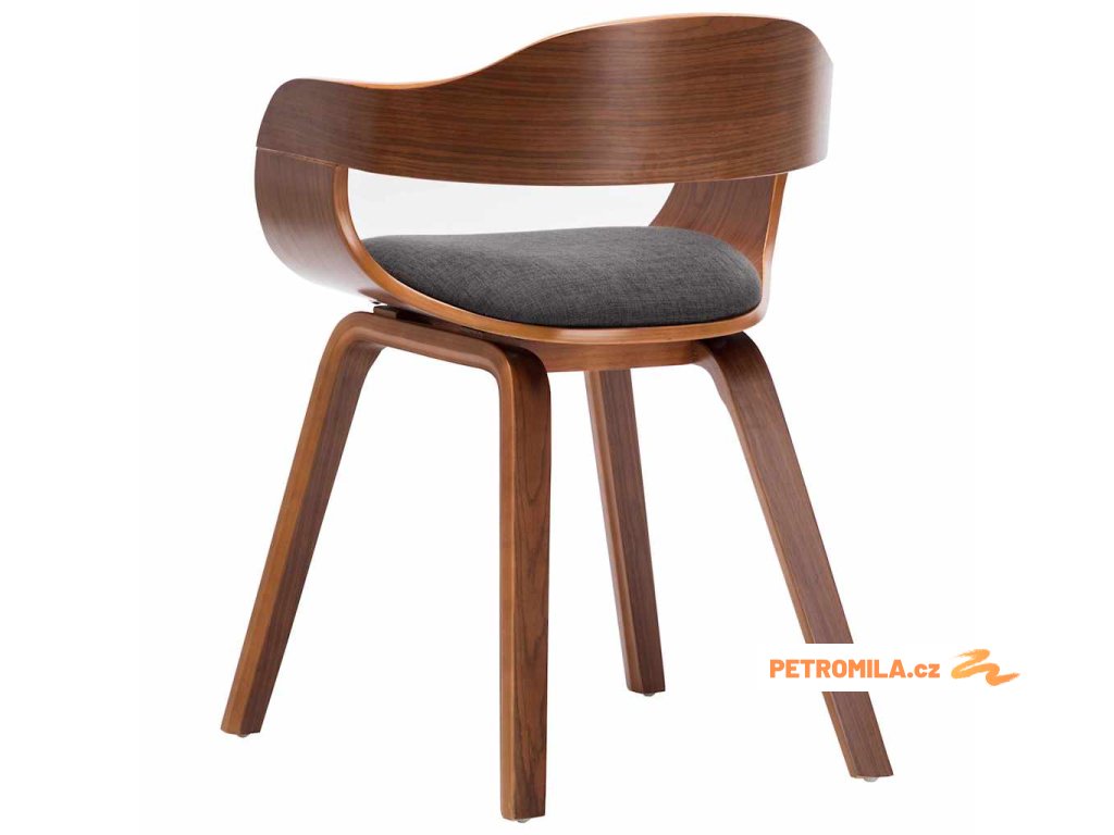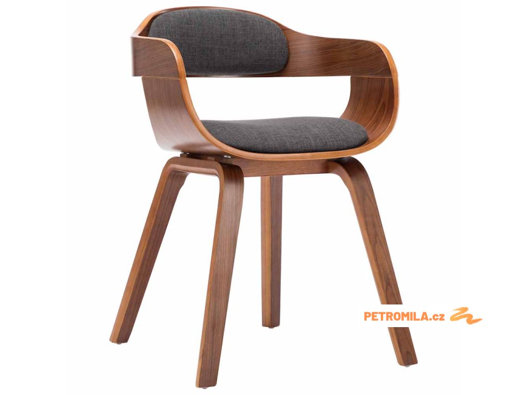 Jídelní židle tmavě šedá textil a ohýbané dřevo